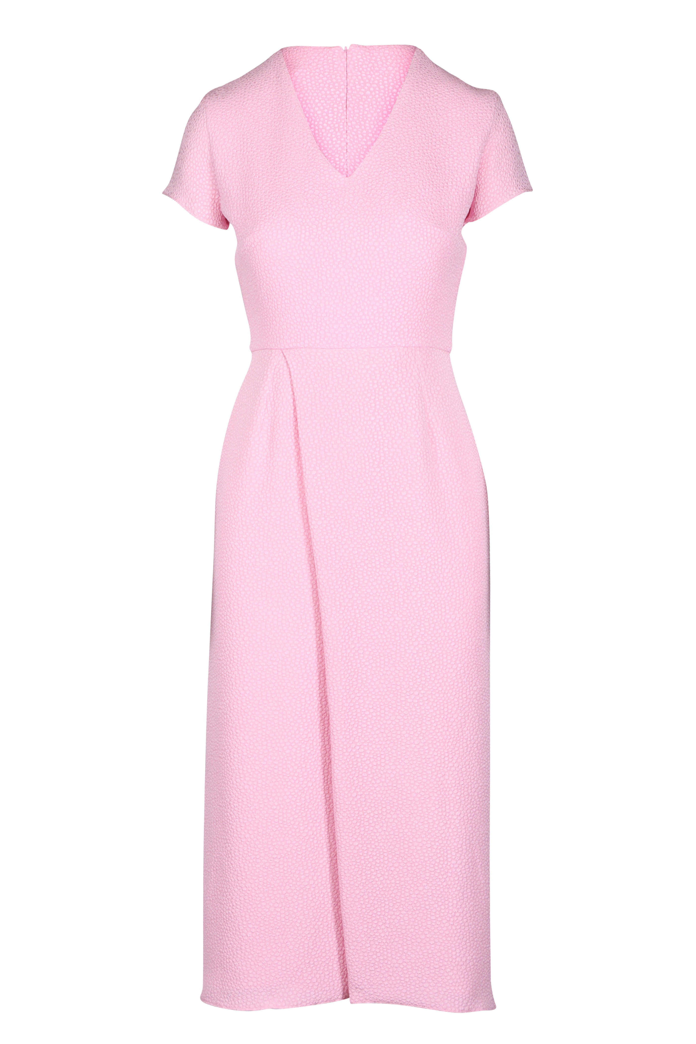 V-neckline. Cap sleeves. Concealed zip fastening at back. Imported. Length from waist 77cm. 96% Polyester, 4% elastane. Dry clean.