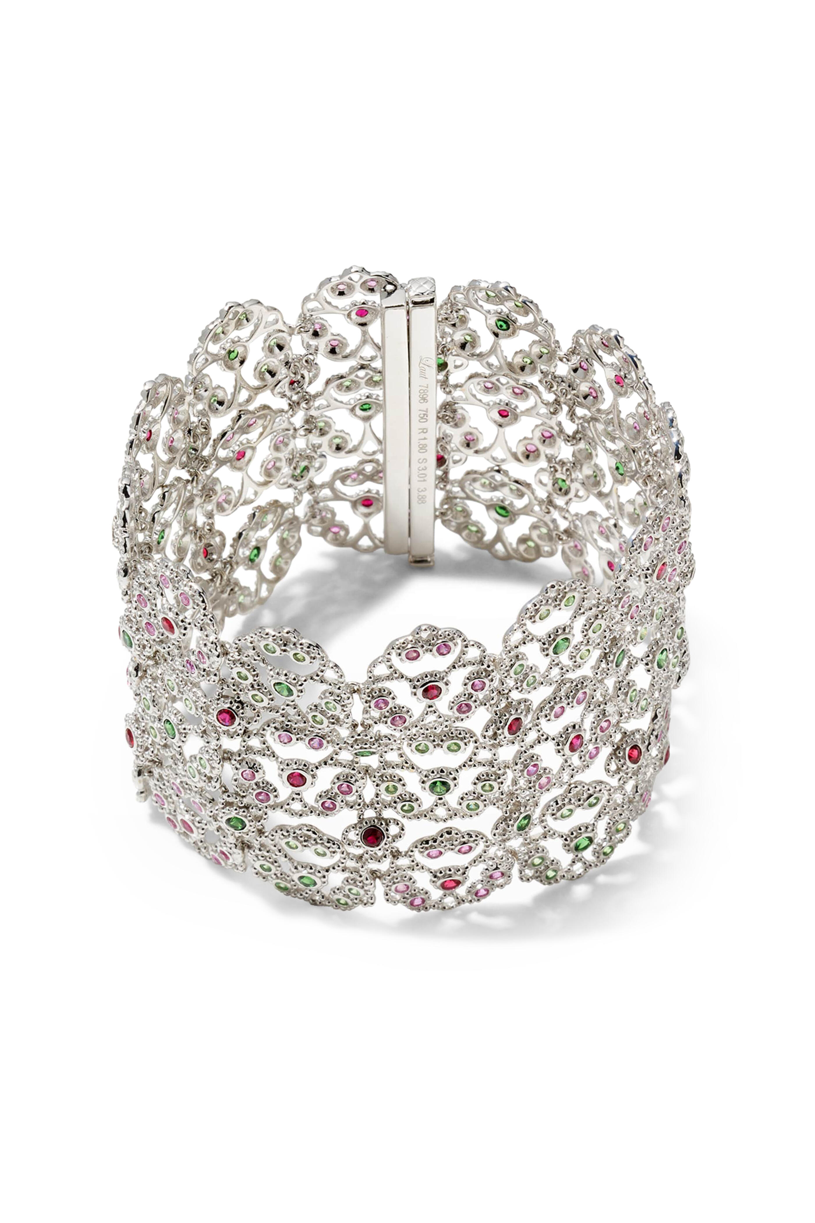 18k White Gold Tsavorite Ruby & Sapphire Bracelet