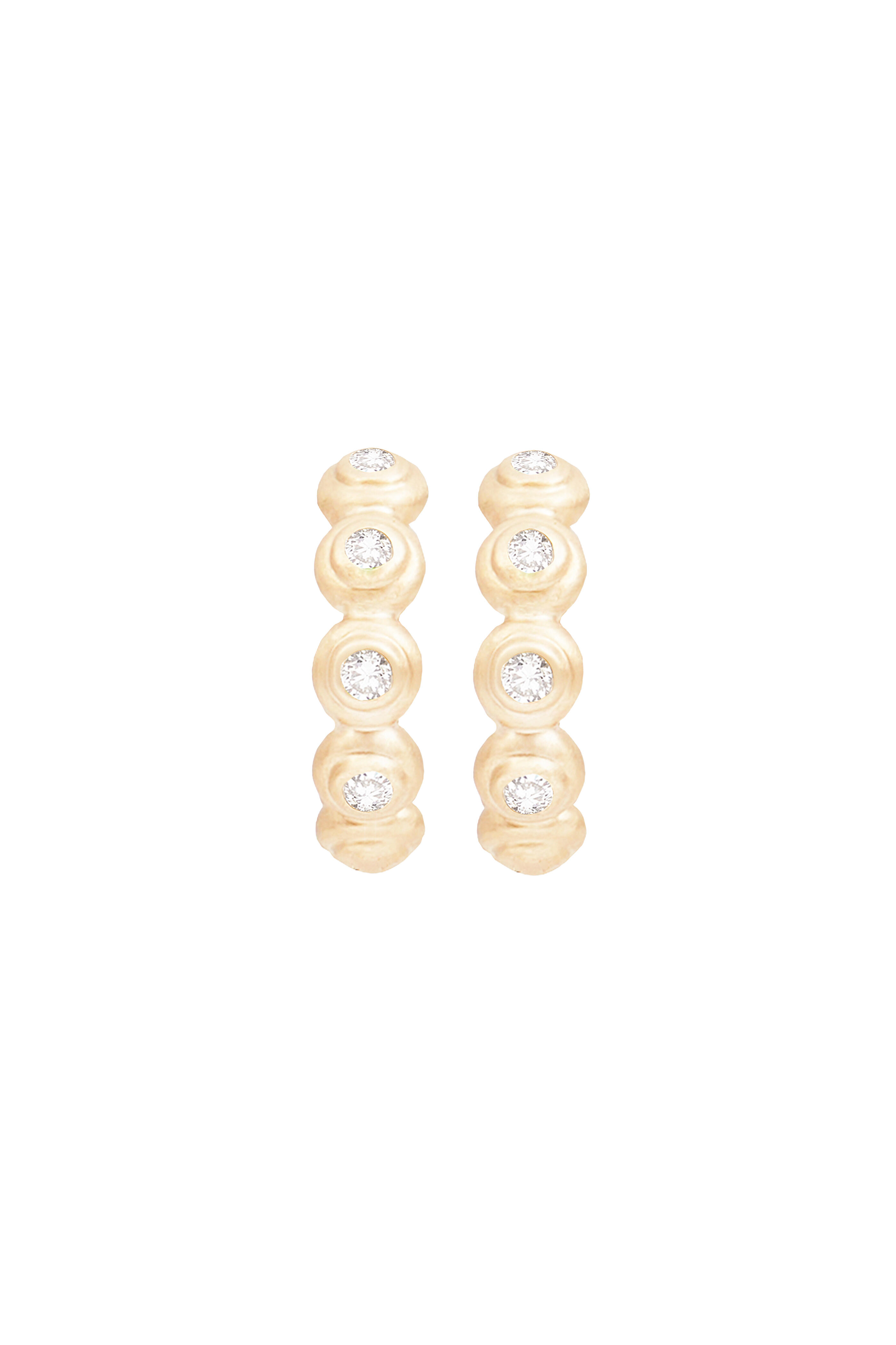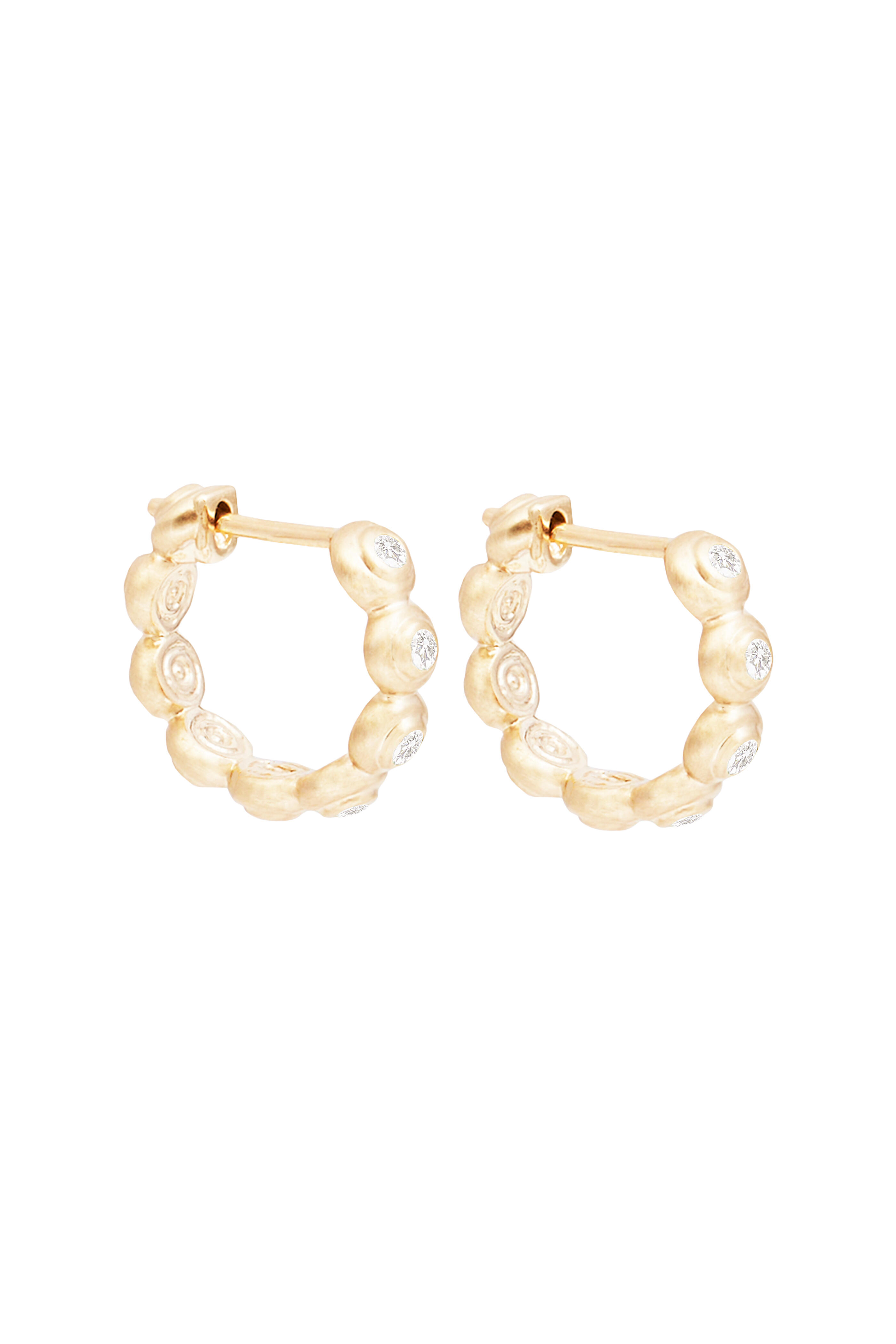 The repeating concentric circle design forming the Evolve Huggie symbolizes the cyclical process of constantly evolving to be our best selves. Thoughtfully designed as the perfect shape and size for an everyday huggie, each link in these 14k earrings centers on a vibrant diamond, creating a uniquely designed piece that is both textural and radiant.