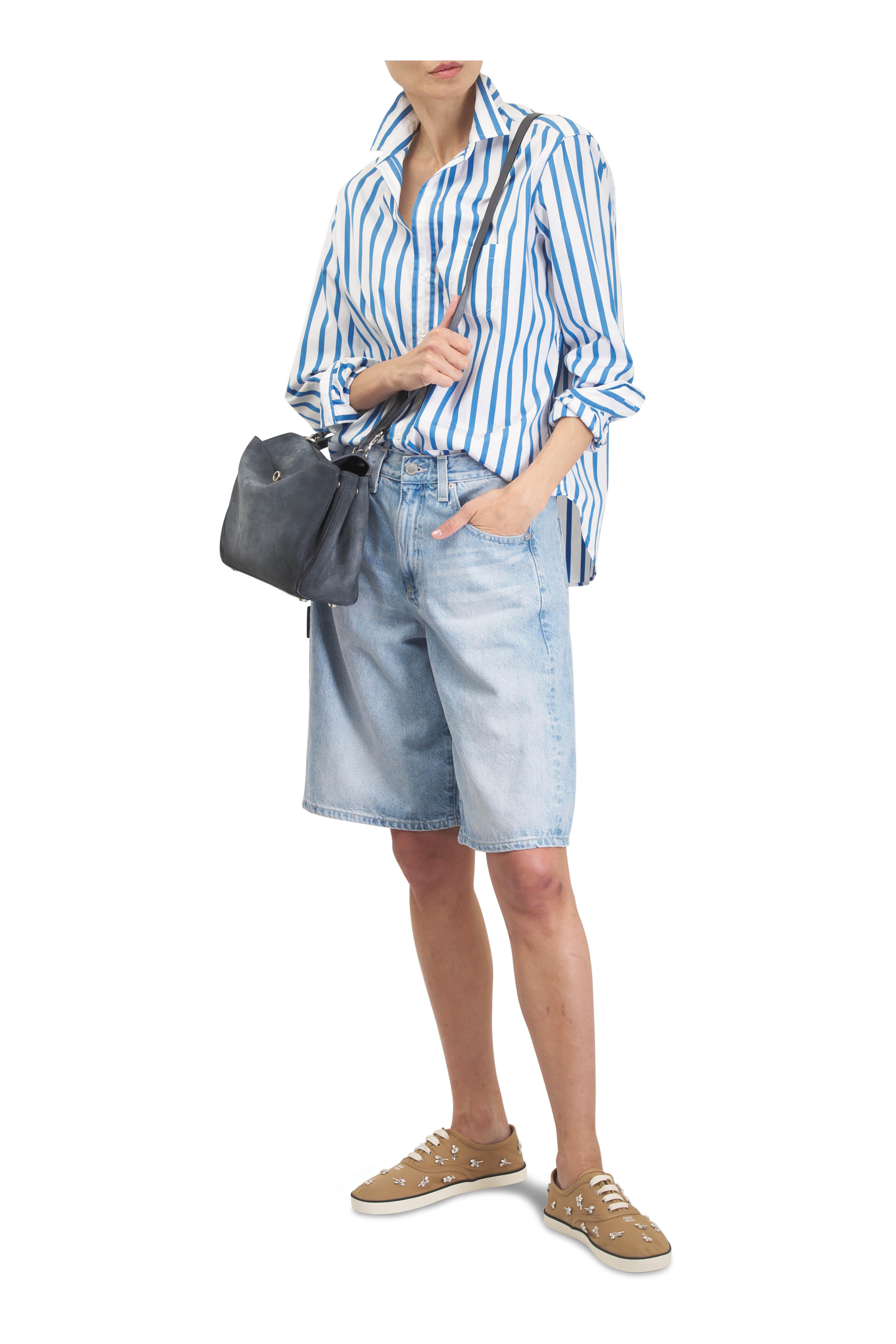 Eileen Blue & White Stripe Relaxed Button Up Shirt