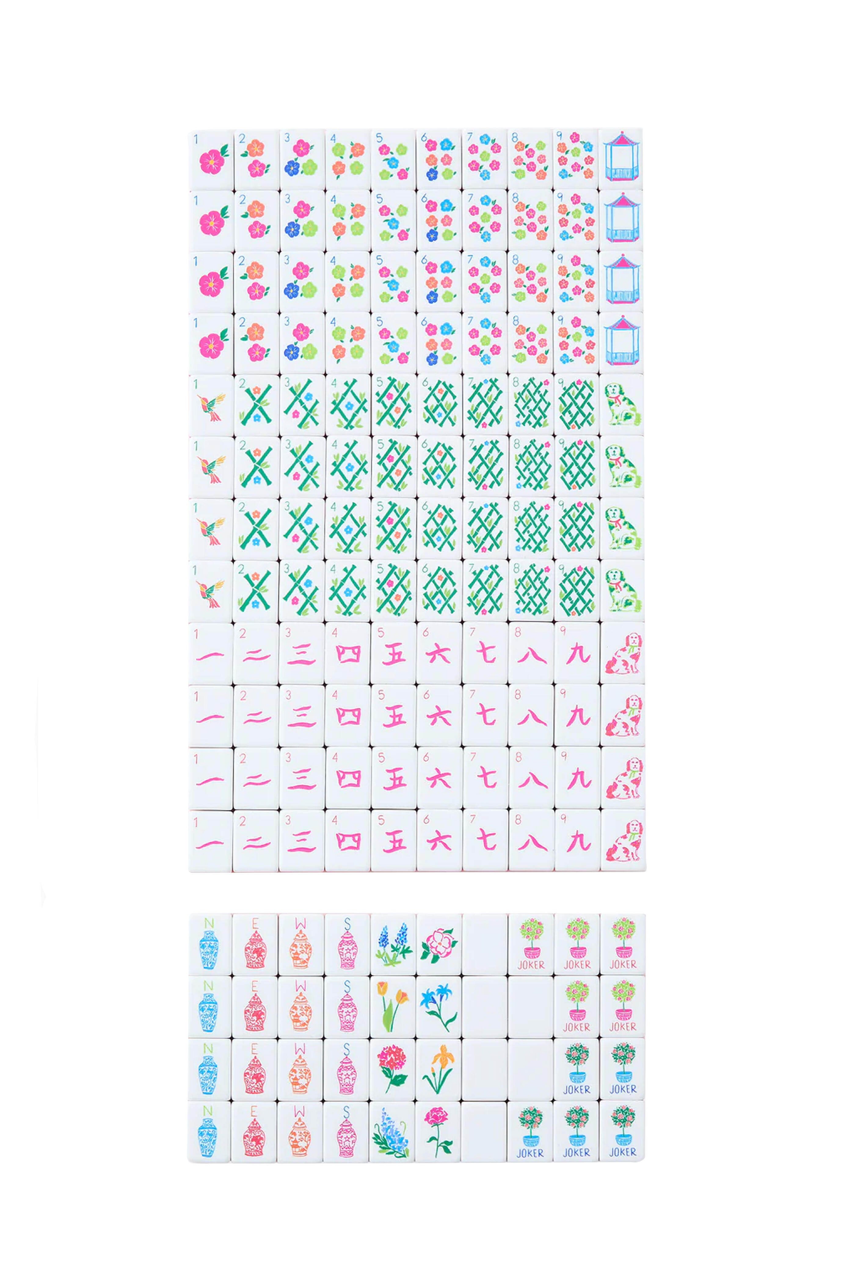 - Tiles include: 160 acrylic tiles, 1-9 Bams, Cracks and Dots (4 of each), N E W S (4 of each), Red, Green, and White Dragon ( 4 of each), 8 Flowers, 10 Jokers, and 6 Blanks
