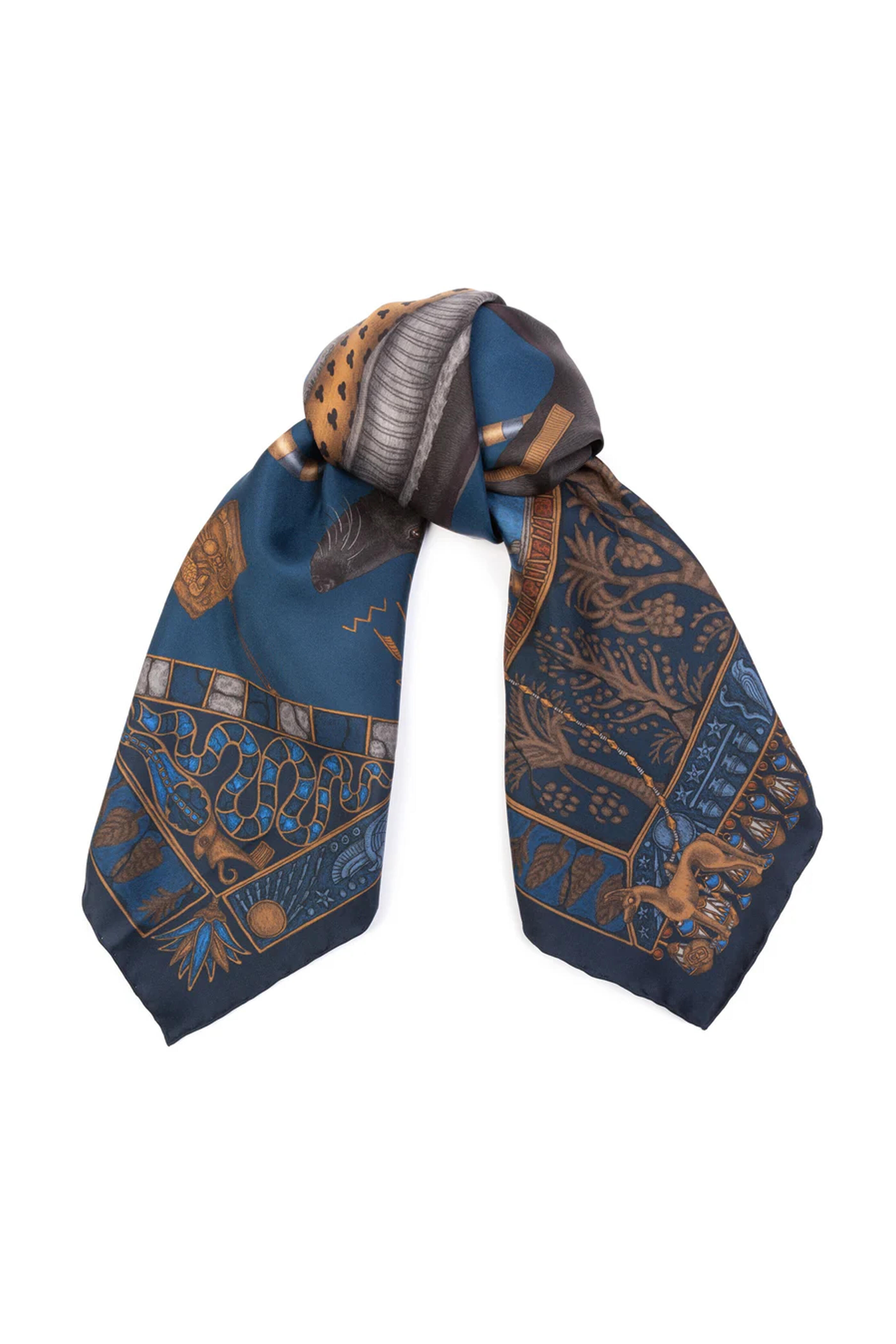 Ode To Anubis Lapis Nile Silk Twill Scarf 90