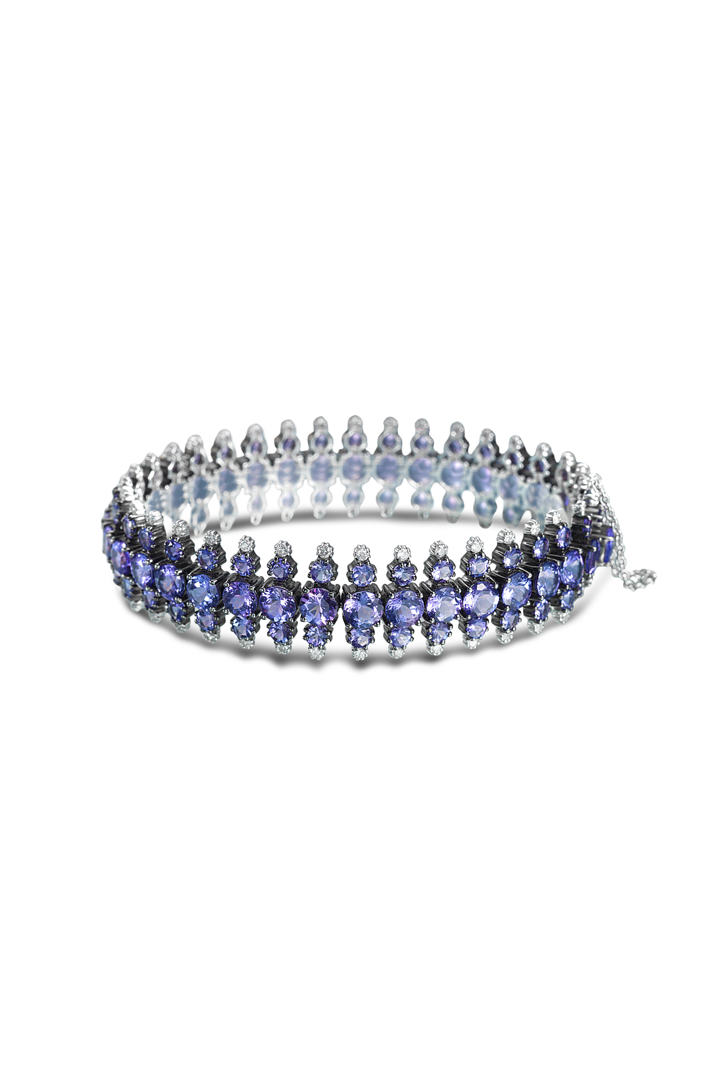 Pipe Diamond & Tanzanite Tennis Bracelet
