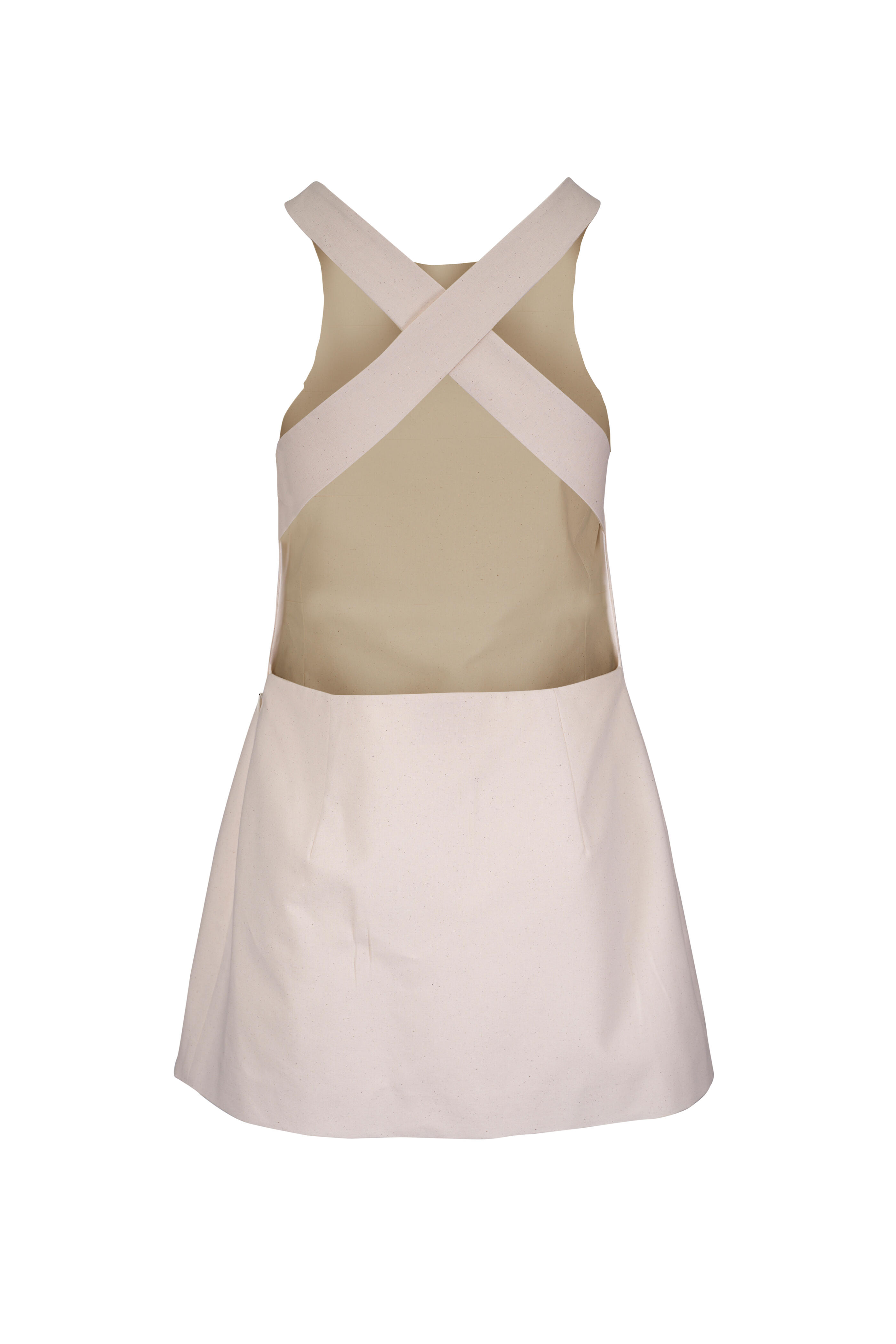 Ecru Embellished Cotton Canvas Apron Mini Dress