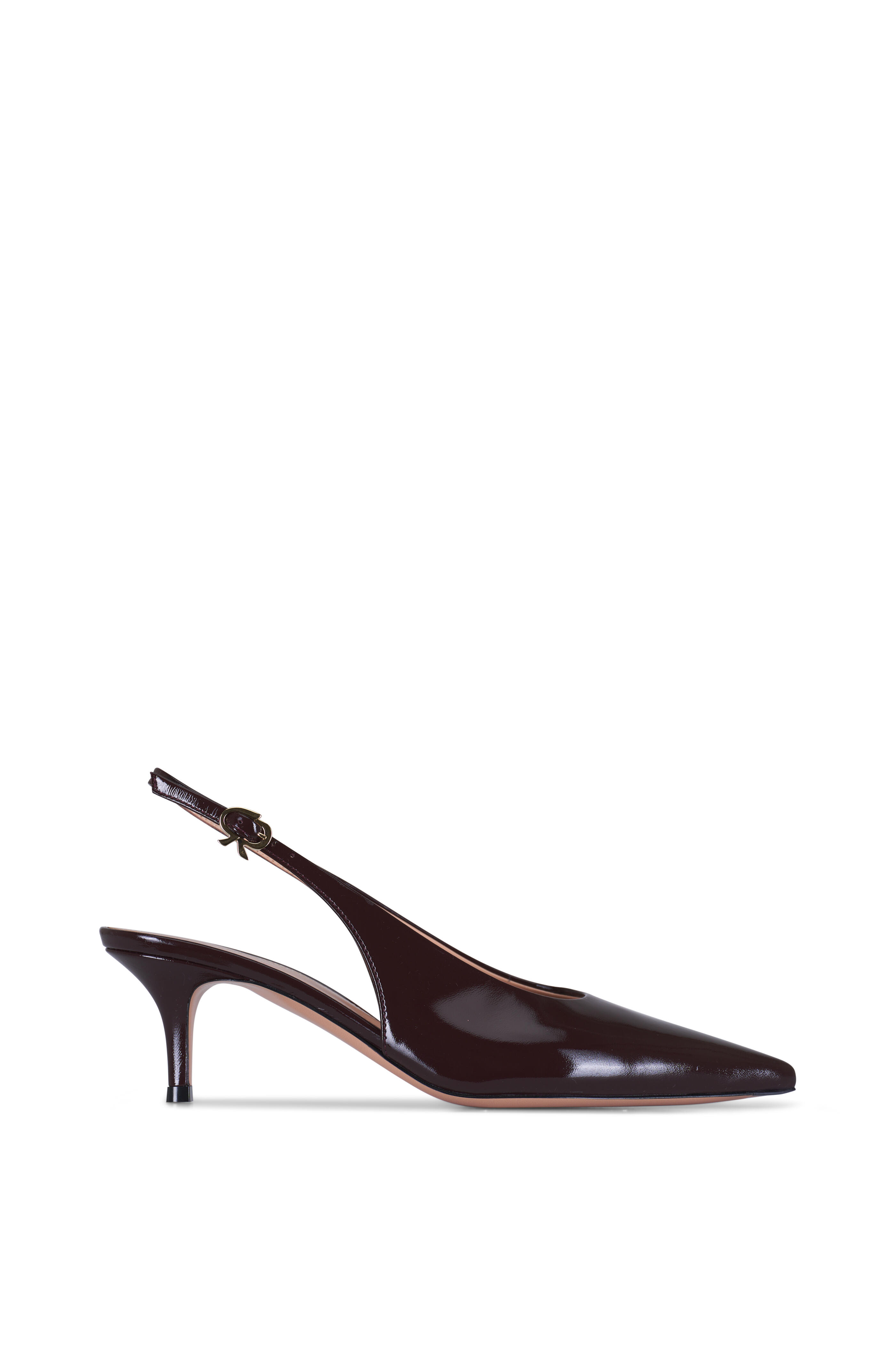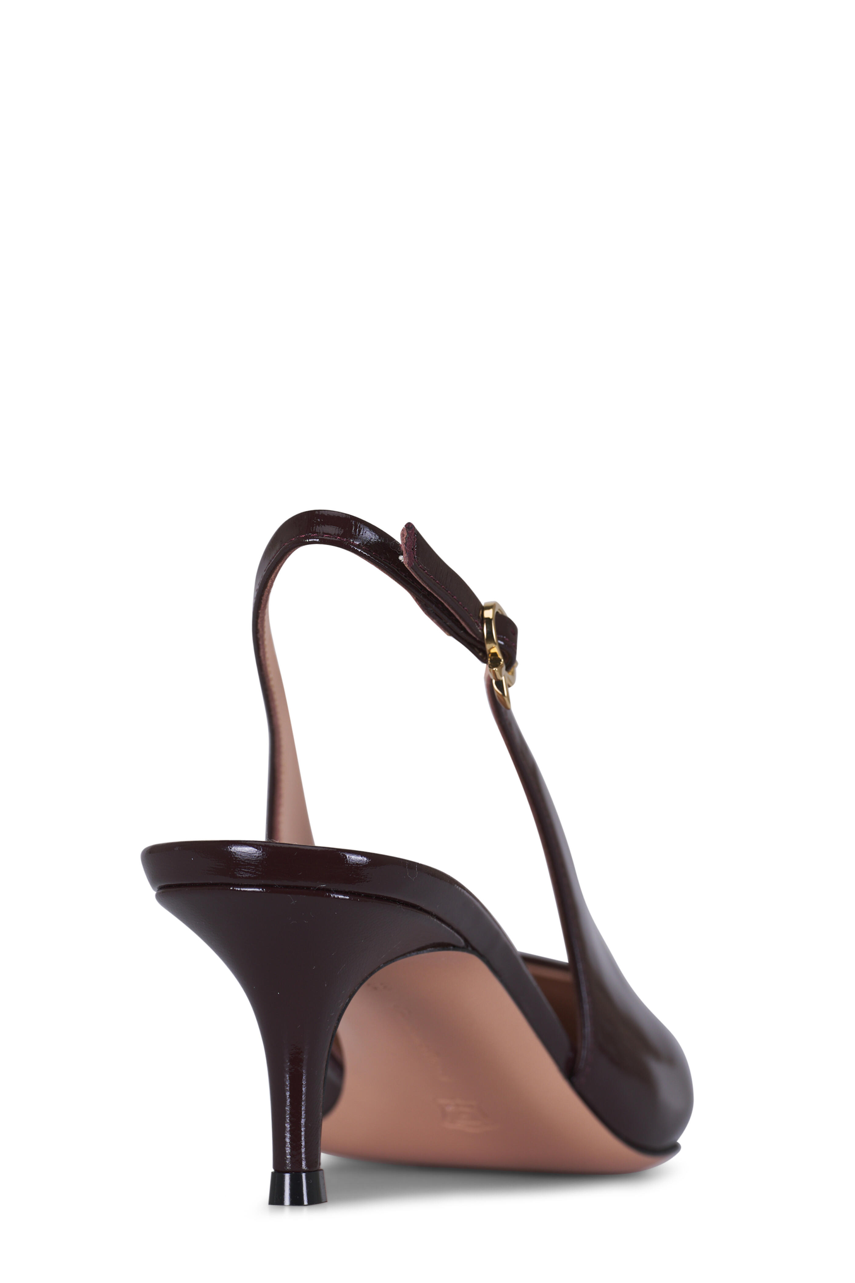Leather upper. Pointed toe. Slingback; adjustable buckle closure. Leather lining and insole. Self covered stiletto heel. Leather sole. Made in Italy. Heel measurement: 55mm.