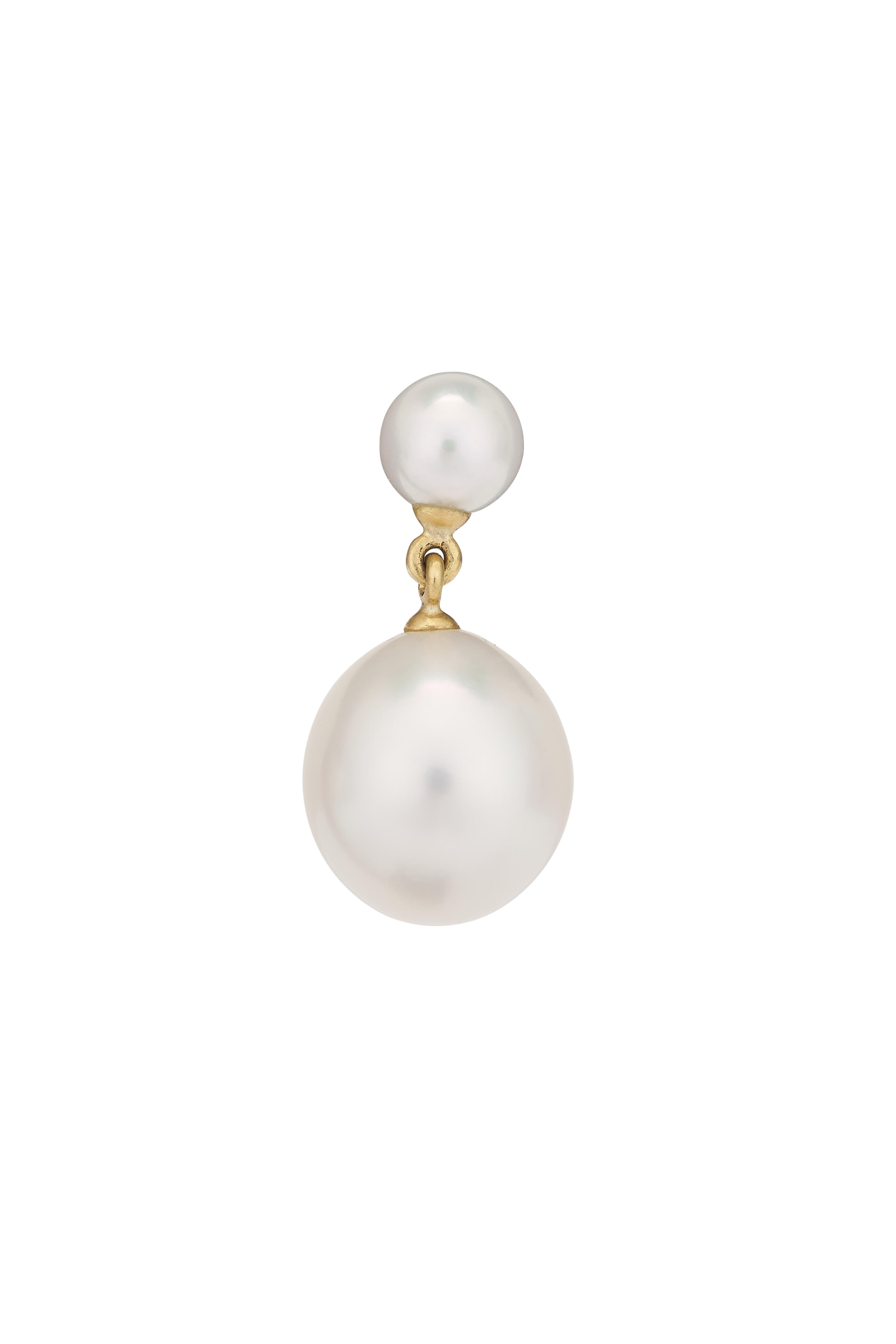 18k yellow gold. 7mm Akoya pearl. 13mm south sea pearl.