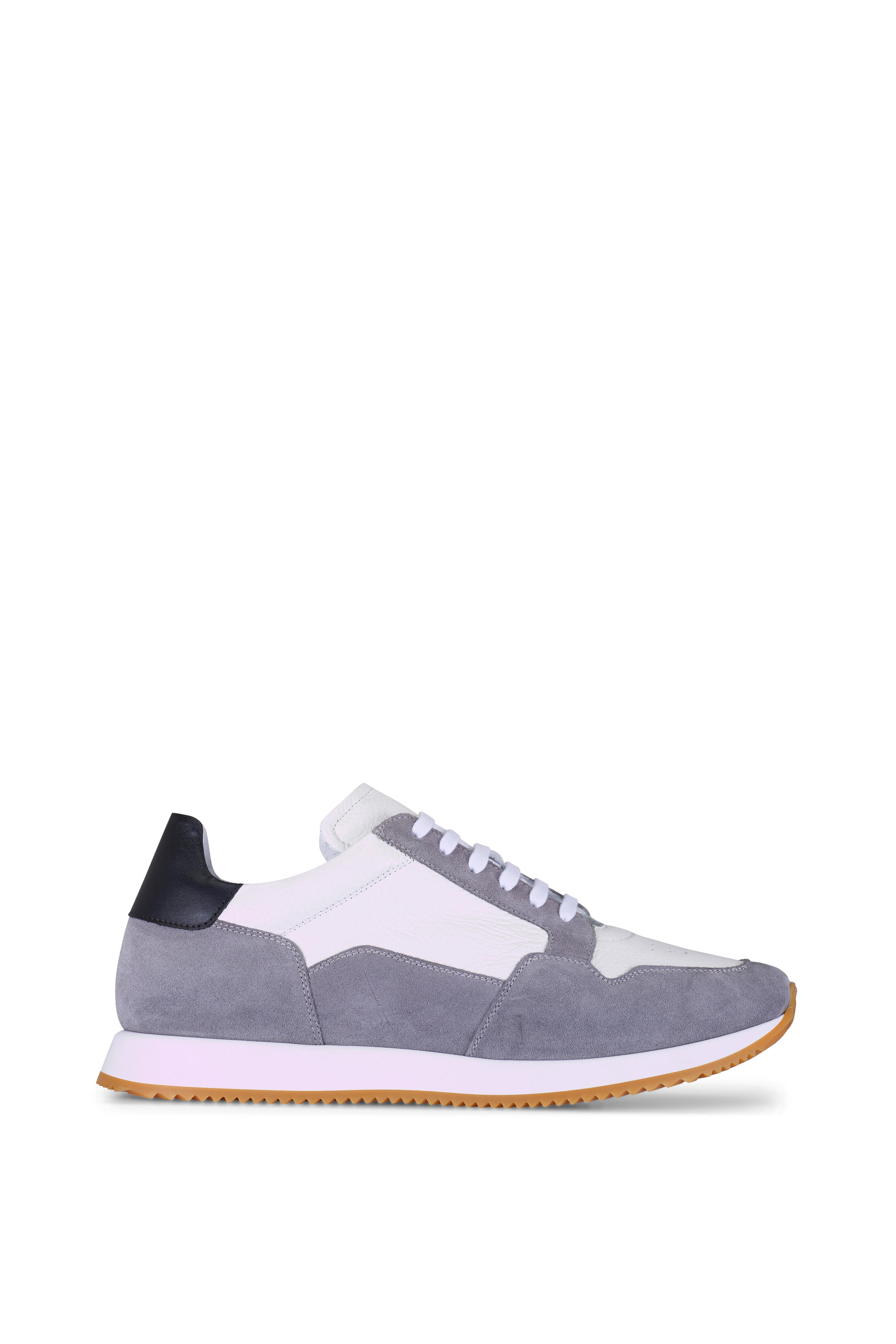Leather and suede upper. Round toe. Lace up closure. Contrasting black leather heel. Cushioned insole. Rubber sole. Imported.