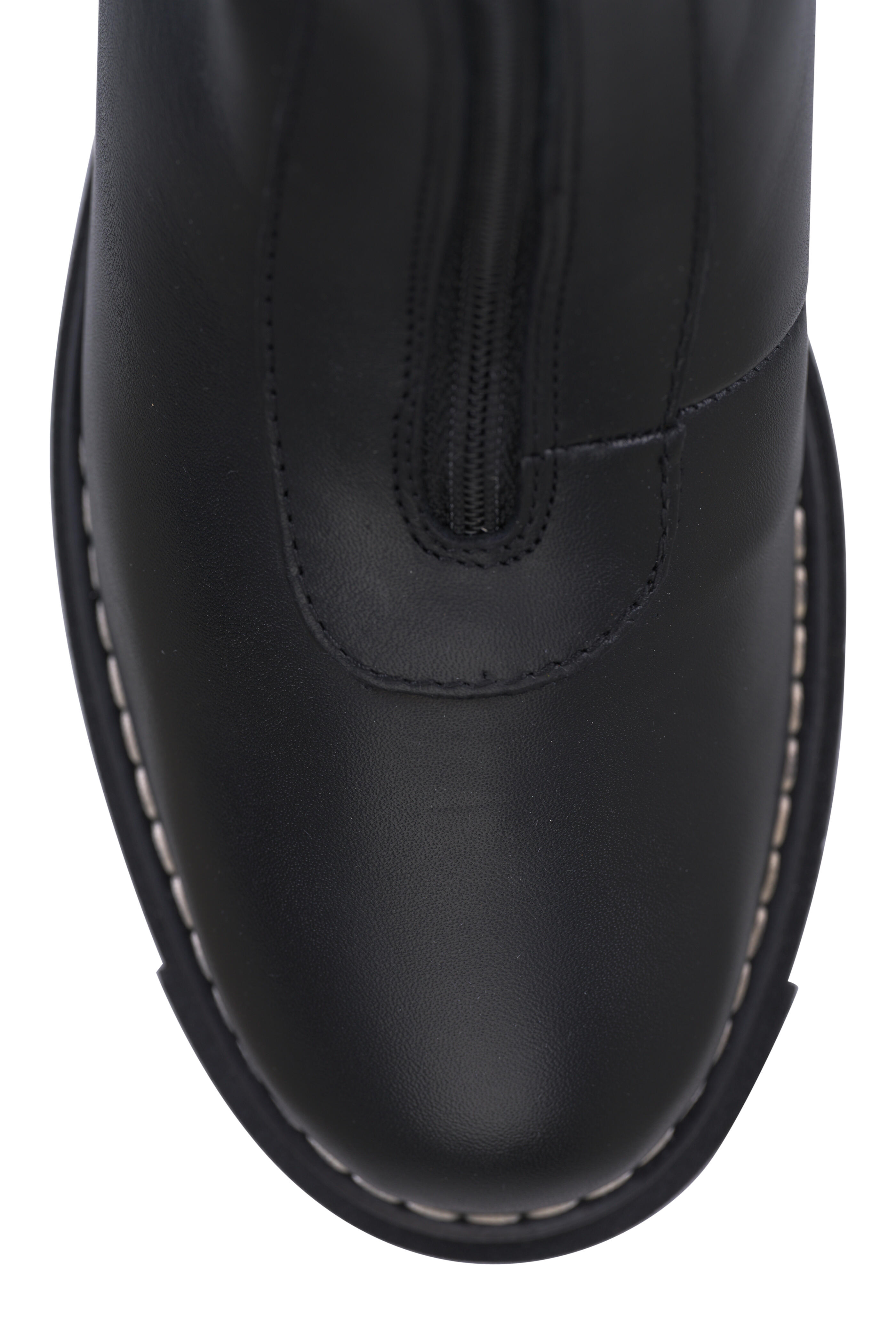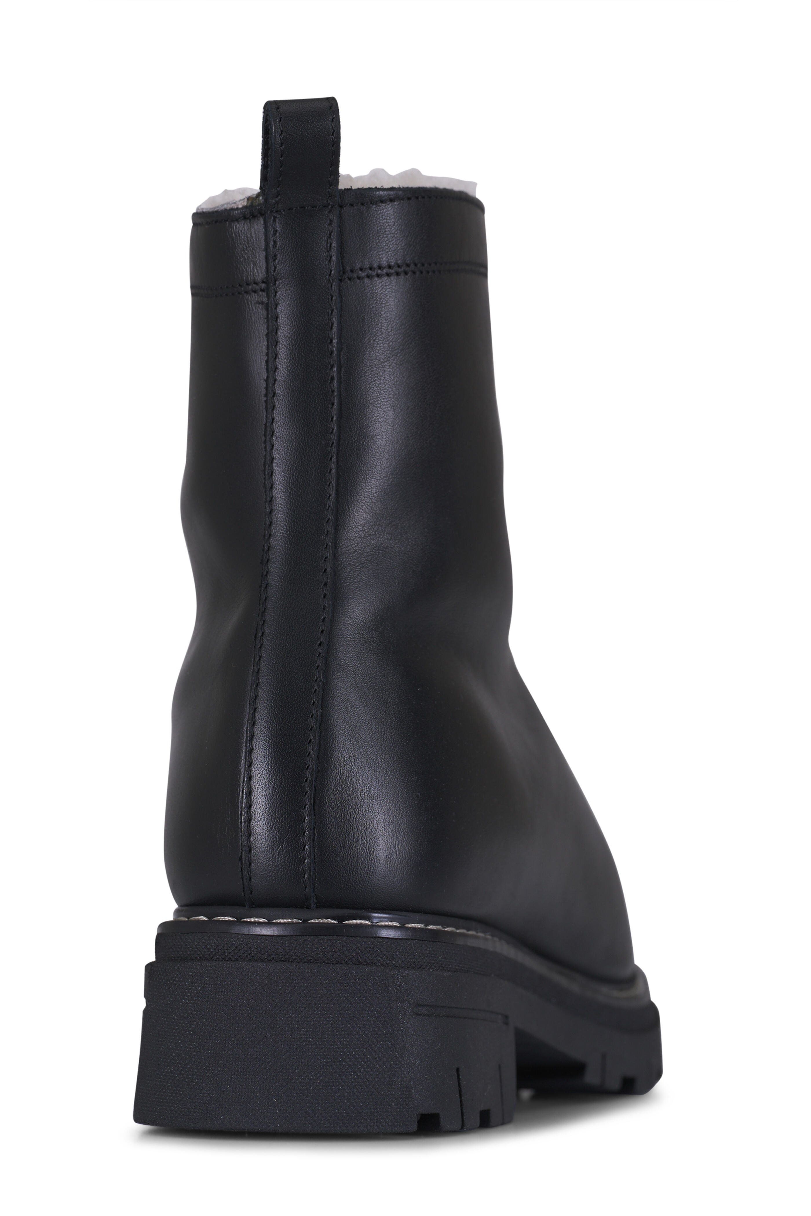 Leather upper. Round toe. Front zip. Back pull tab. Shearling lining. Rubber sole. Made with signature waterproof materials. Made in Italy. Heel Height: 42mm / 1.6" - Platform: 30mm / 1". Calf Circumference: 12". Shaft Height: 5.5".