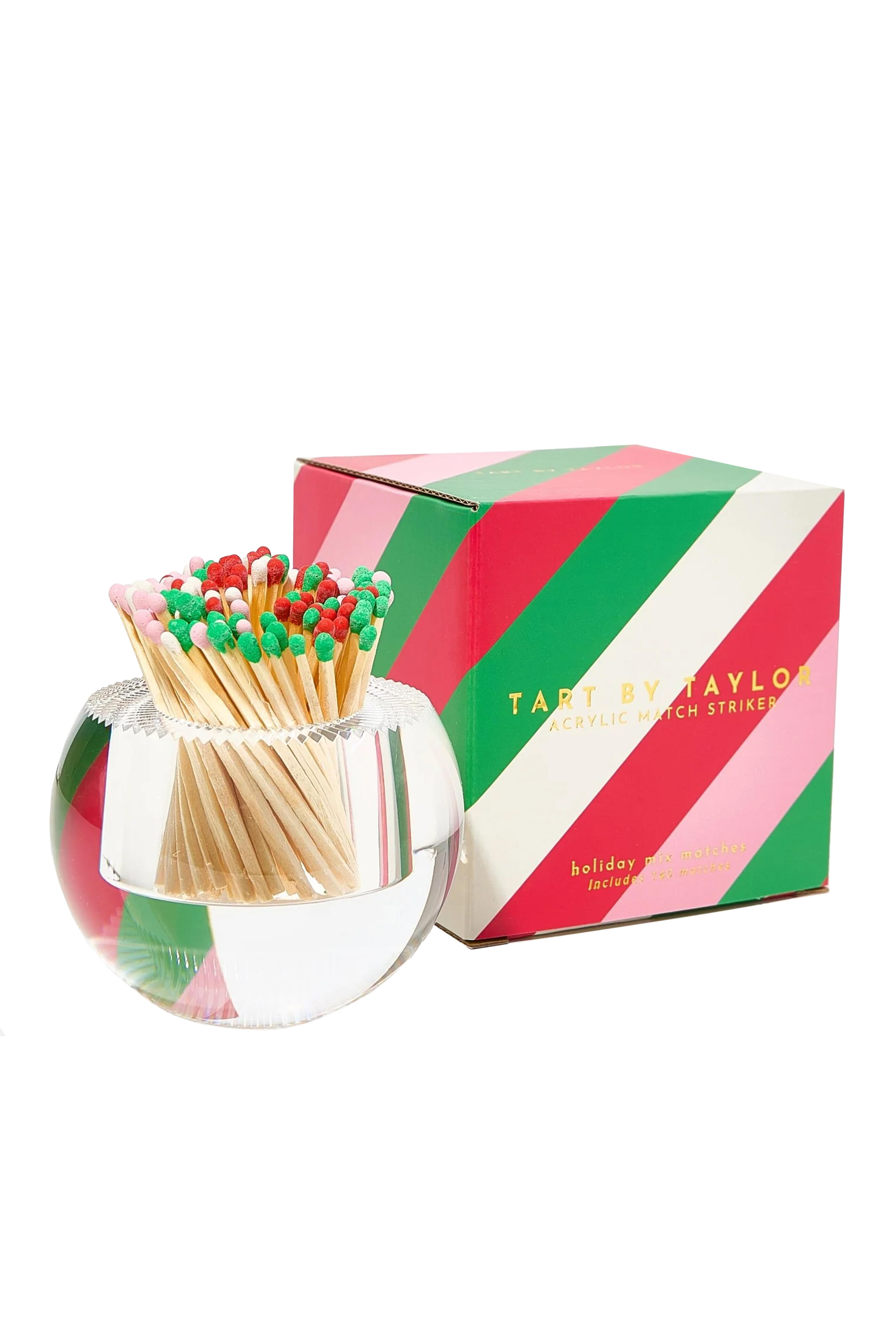 Includes 140 matches. Wipe clean with damp cloth. Featuring a match strike pad on bottom for igniting matches. Made in the United States. Weight: 1.31 lb.. 3”H x 3.5” D.