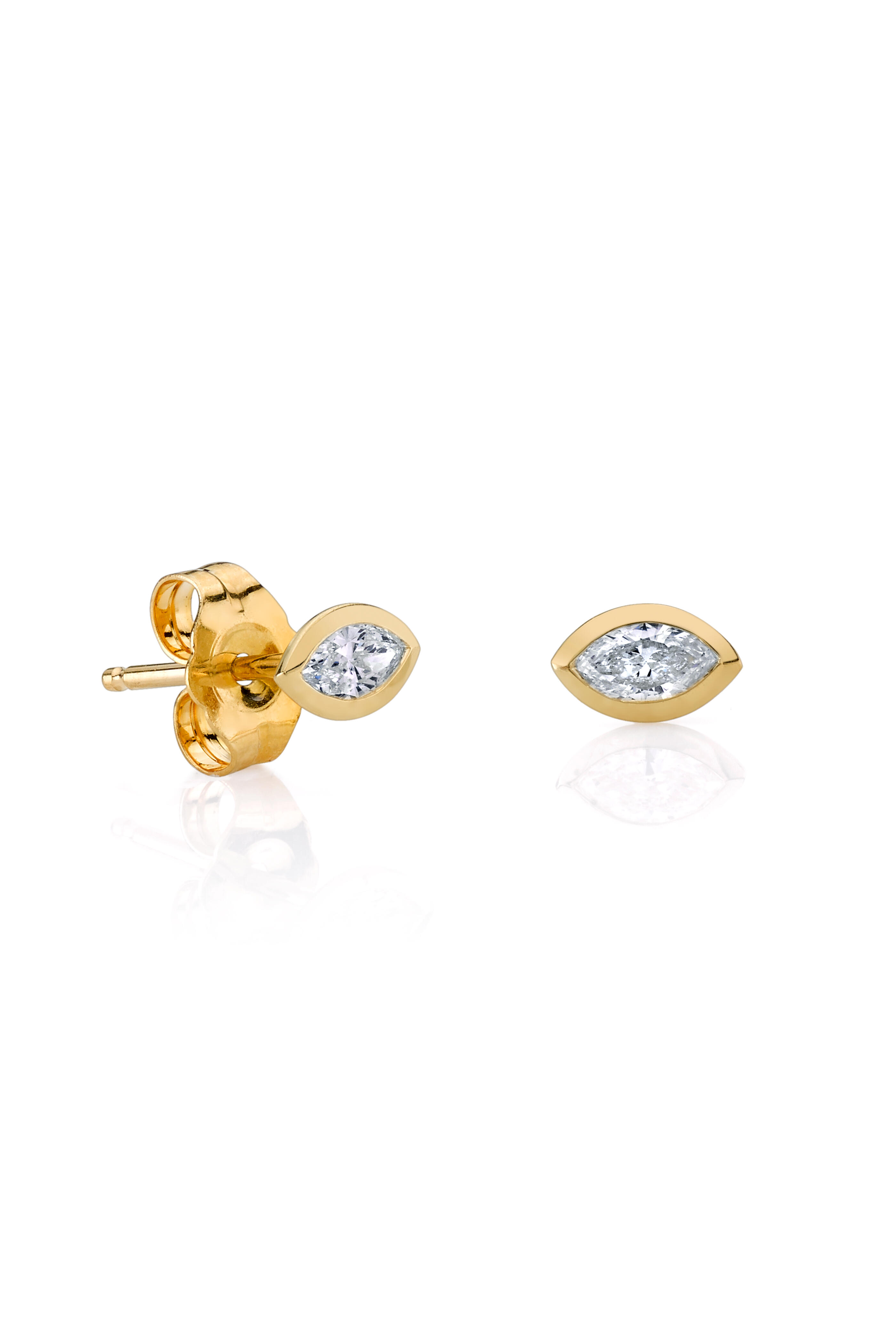 14k Yellow Gold Marquis Shape Bezel Studs