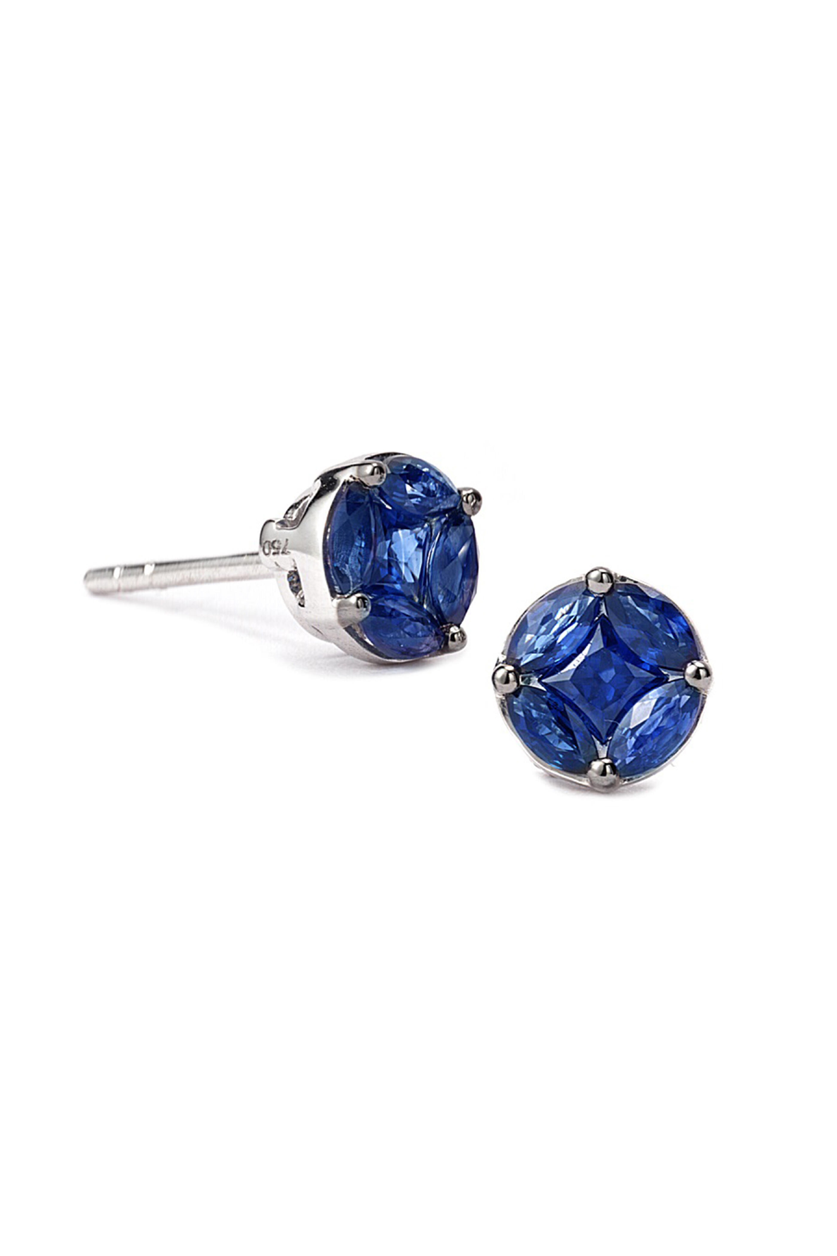 These 7MM round studs are a modern ode to classic blue sapphires. A total of 1.19 carats of vivid blue stones are invisibly-set in 18K white gold with grey rhodium finish, creating the illusion of a singular, larger 1.5 CT sized gemstone. Crisp and effortlessly elegant, they make a striking statement from day into night.