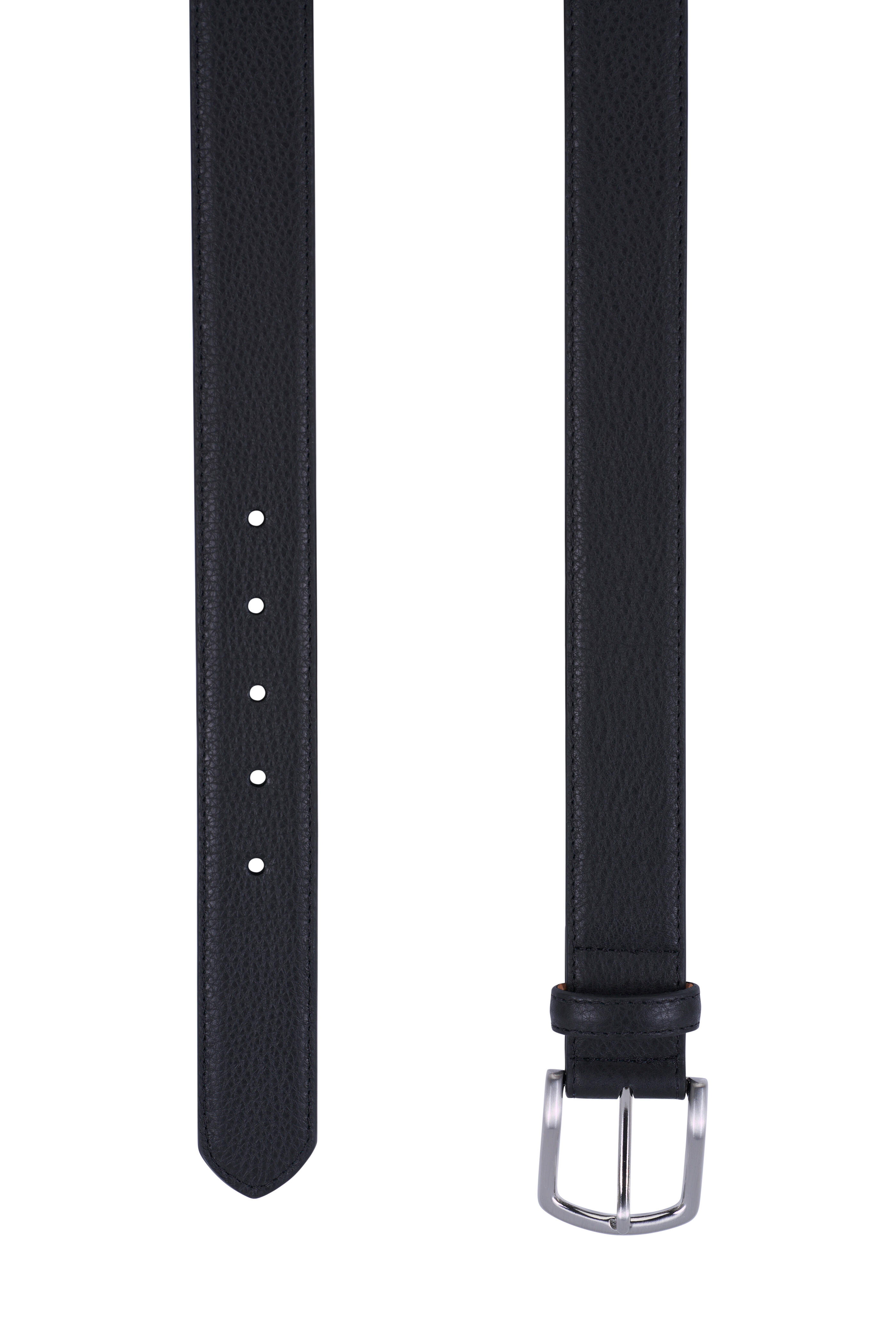 Genuine calf leather. Nickel-plated buckle. Pointed tip. Single loop keeper. Made in USA.