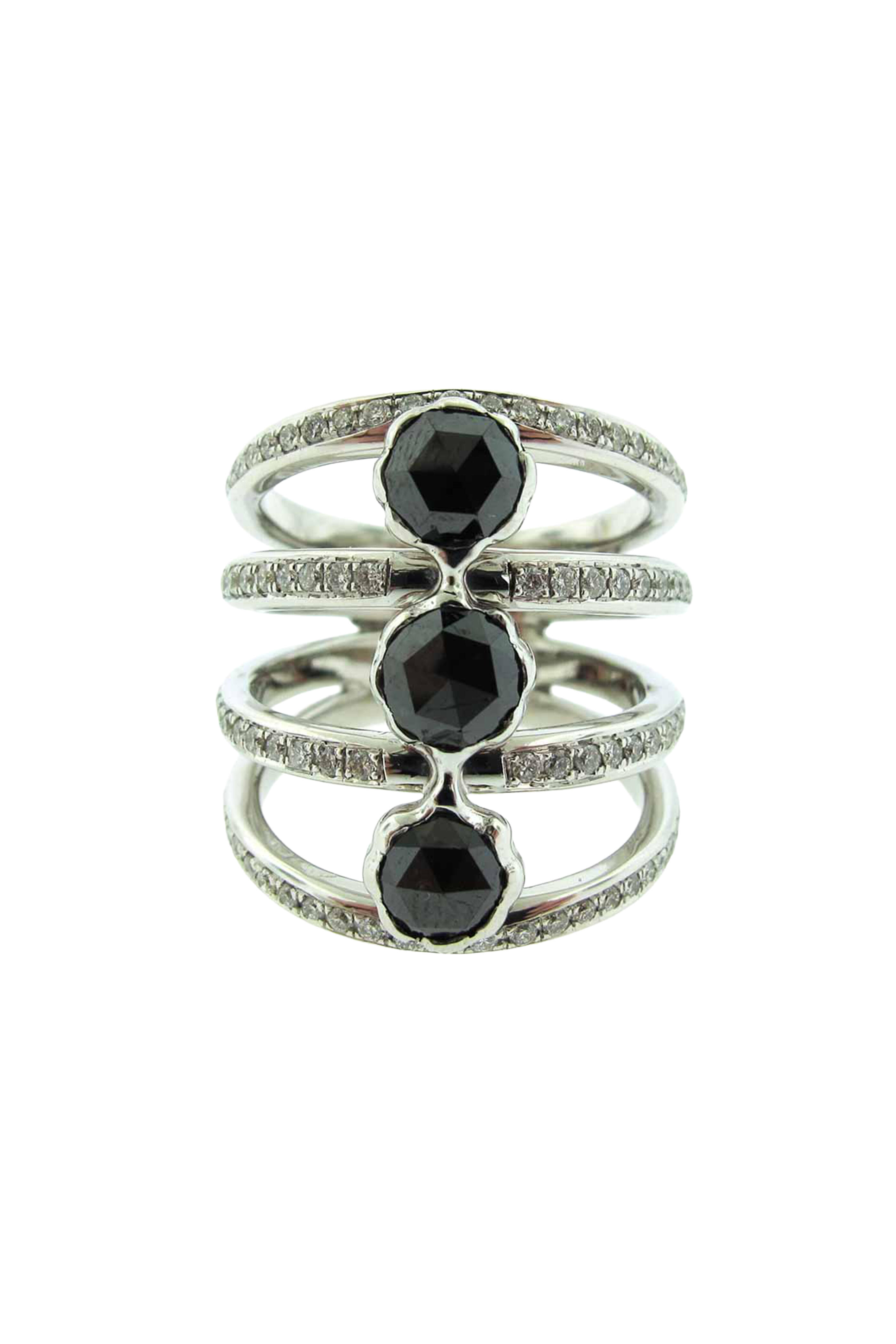14k white gold. .70ct diamonds. 2.14ct black diamonds.