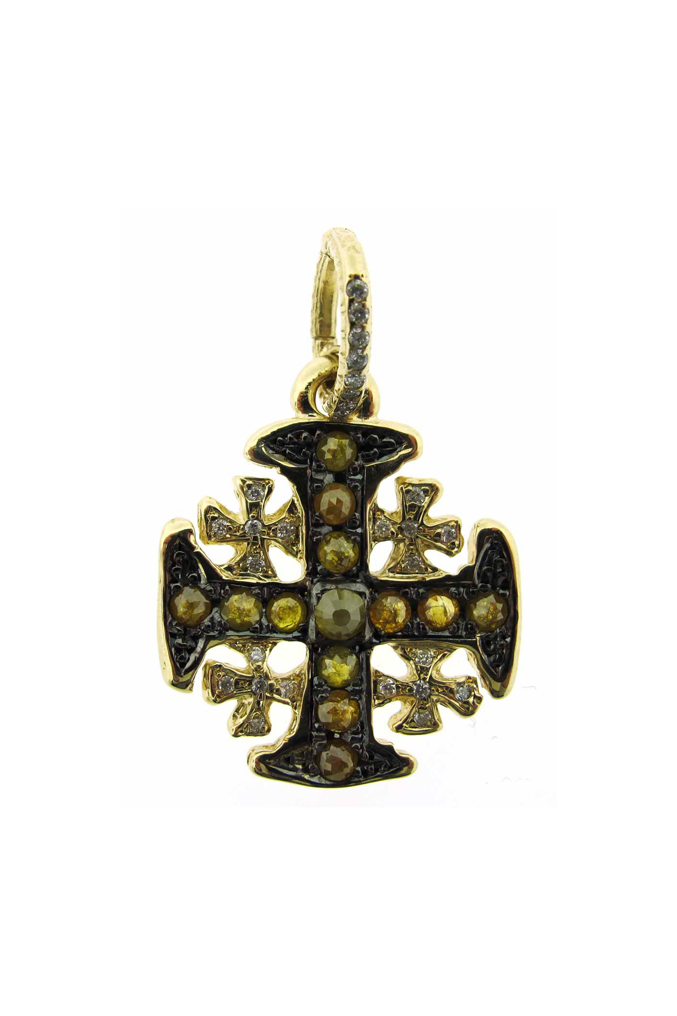 14k yellow gold. Black rhodium finsih. 2.55ct diamonds. Necklace sold separately.