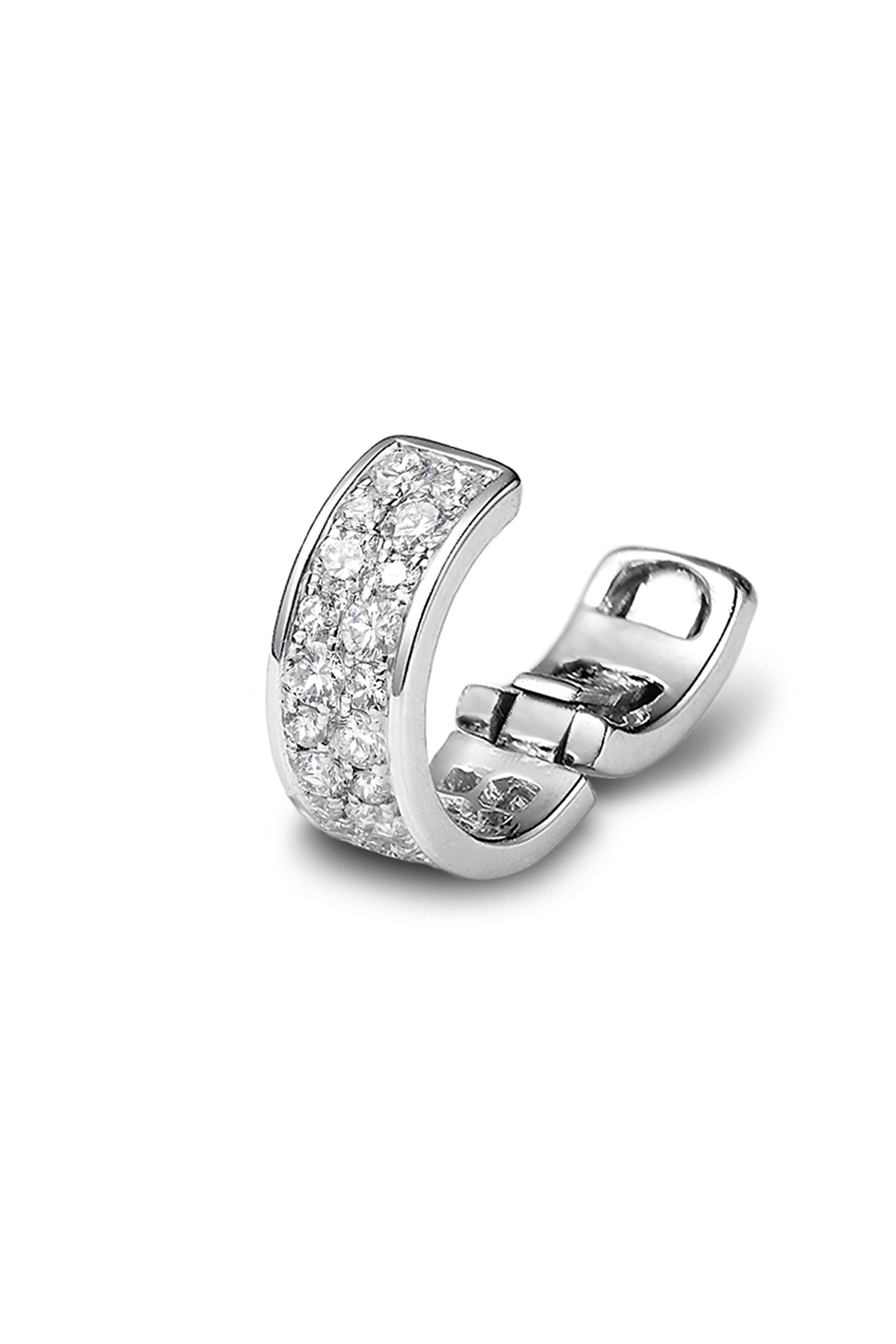 Sleek, sculptural, and wearable. This hinged "clip on" ear cuff in 18k white gold is pavé-set with 0.44 carats of brilliant white diamonds for a refined flash of light. The hinged design ensures effortless wear and all-day comfort—no piercing required. it’s perfect for stacking, styling, and having a little fun with your everyday look.