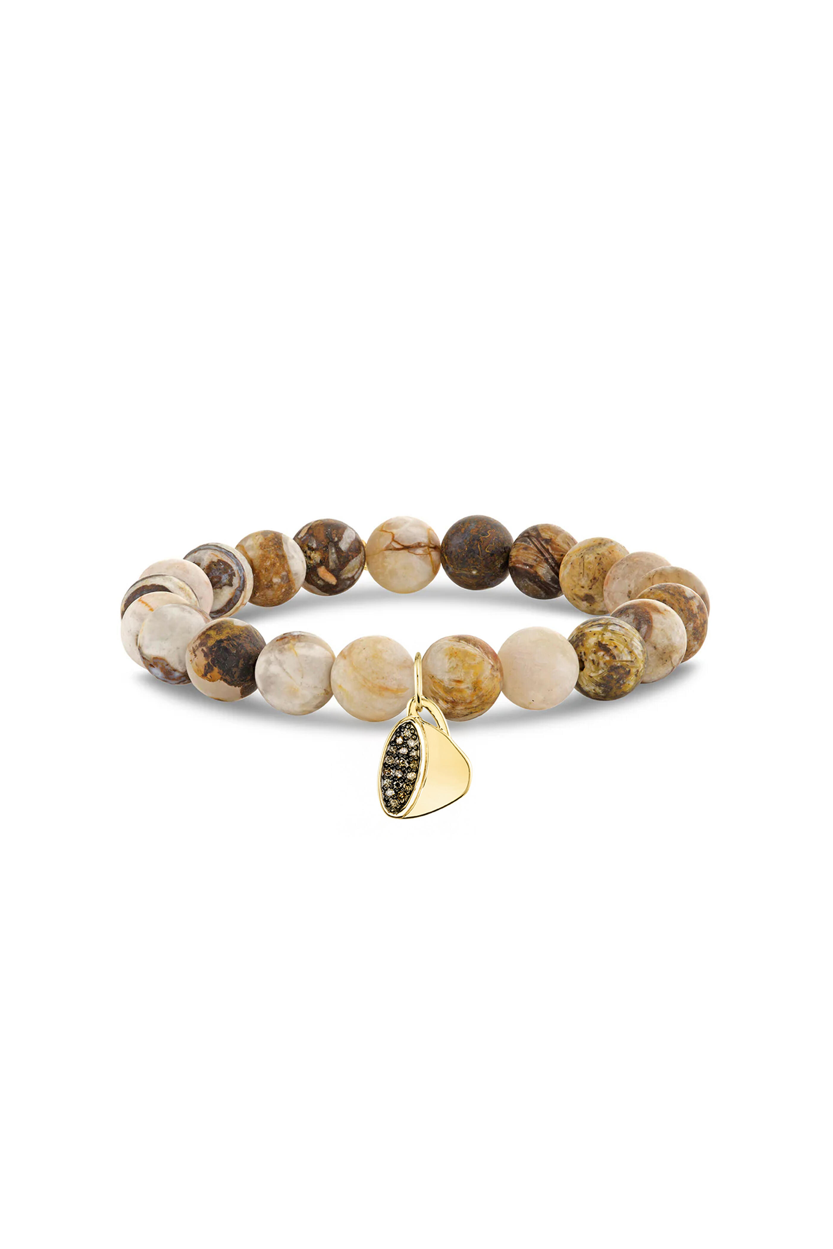 14k Yellow Gold Coffee Charm Beaded Bracelet