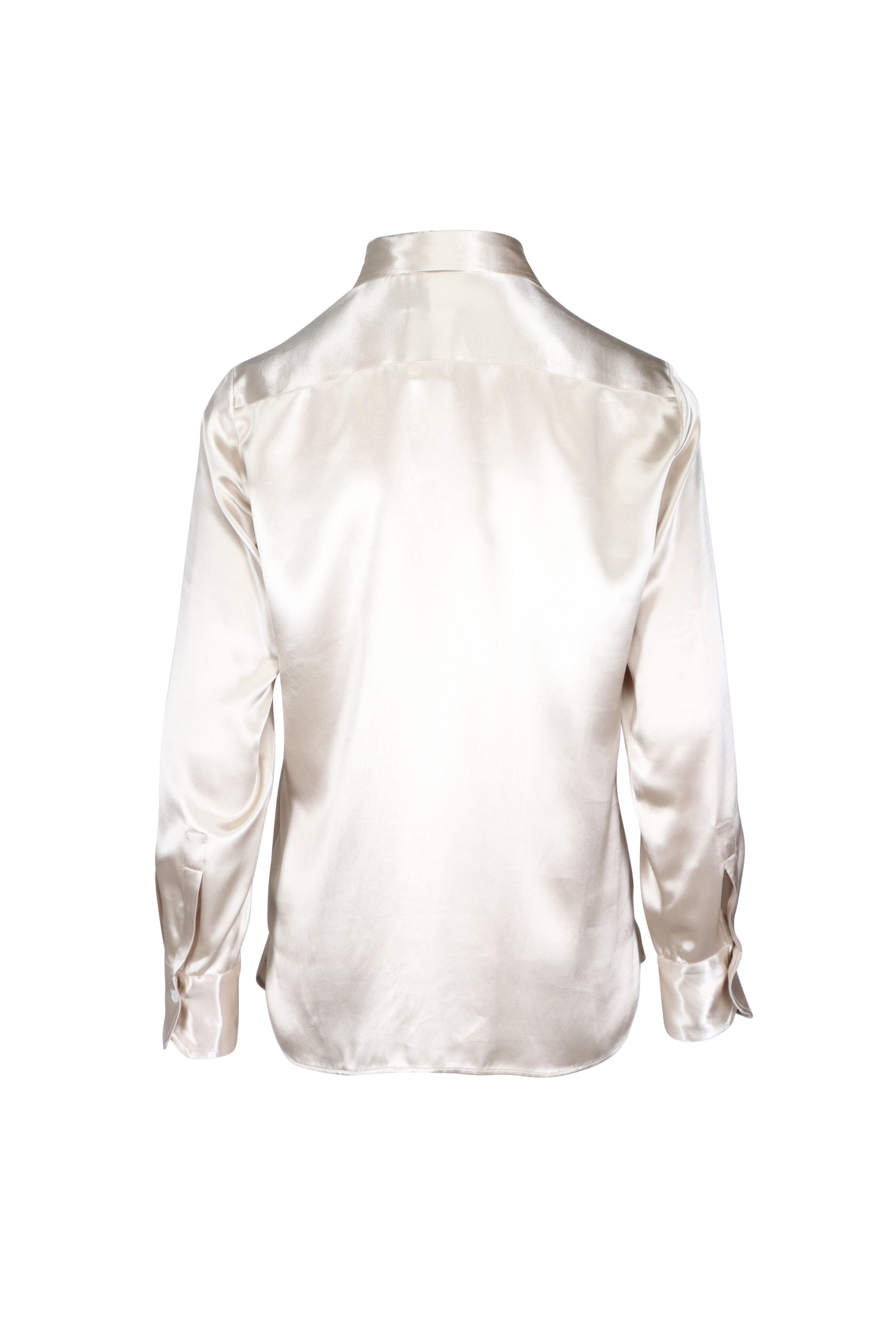 Point collar; concealed button front. Long sleeves; button cuffs. Relaxed fit. Shirttail hem. Made in Italy. 100% viscose. Dry clean.