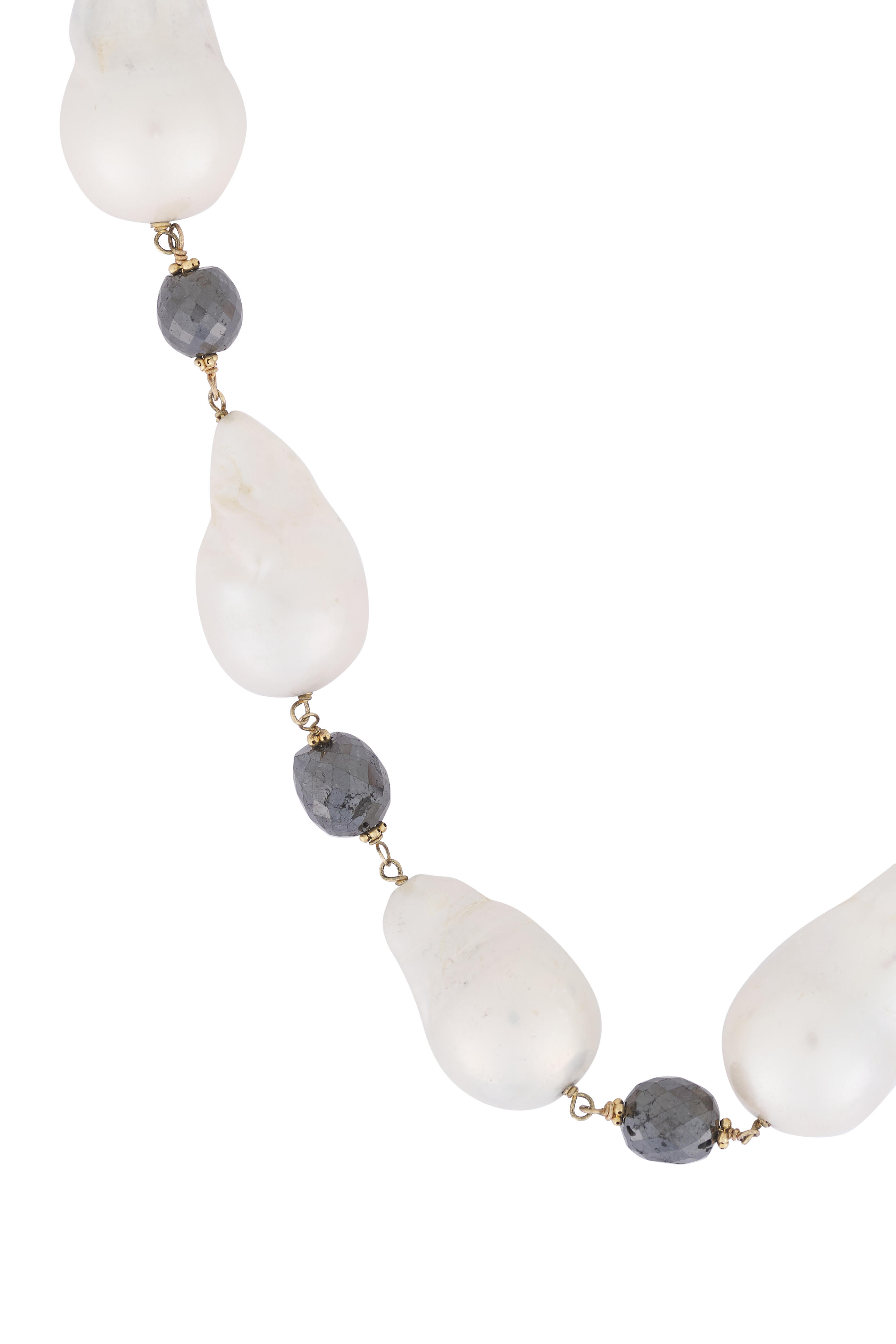 14k Yellow Gold. Pearl. 40 ct Black Diamond. 25 x 15 mm- 25 x 20 mm.