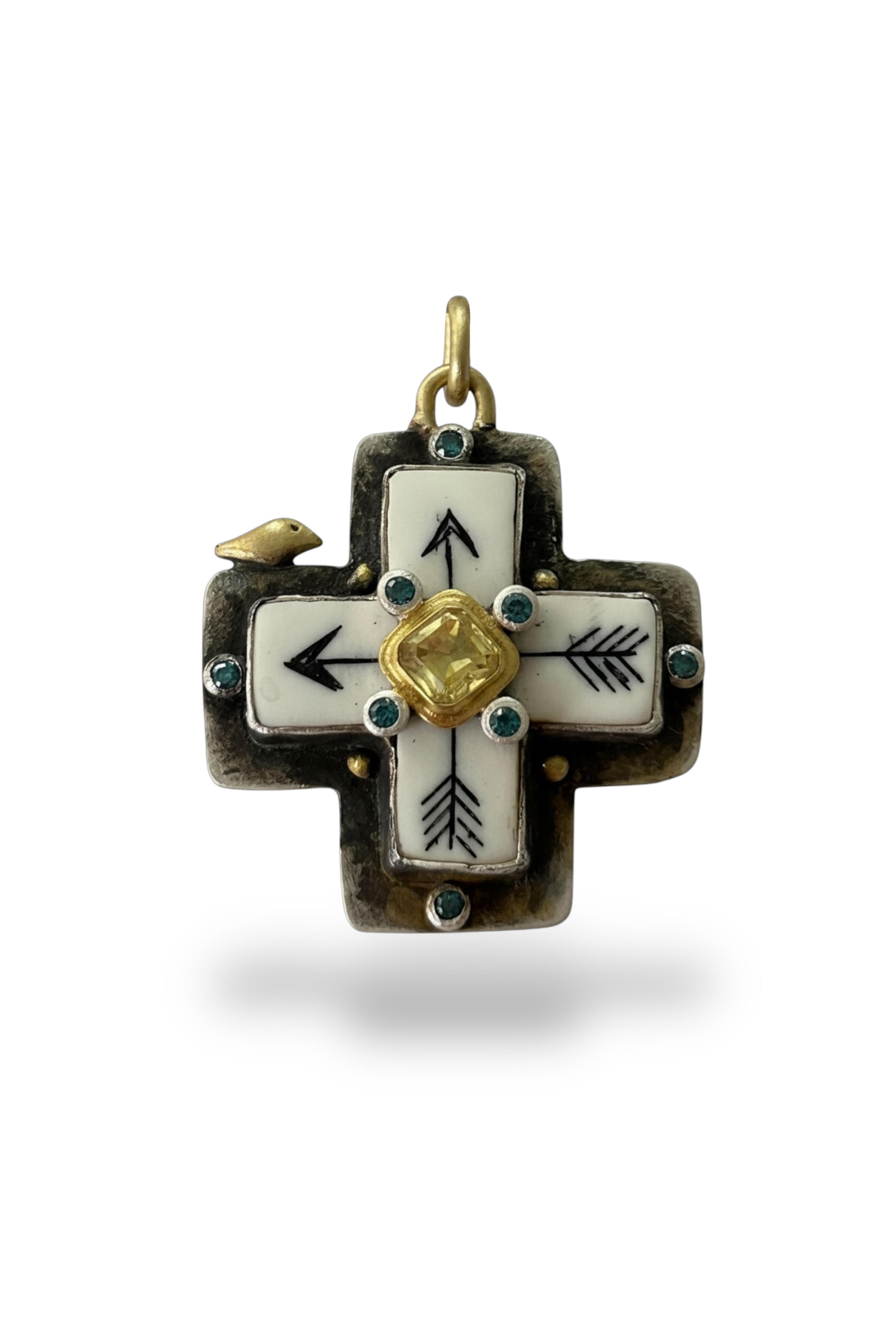 Compass Rose Diamond & Sapphire Pendant