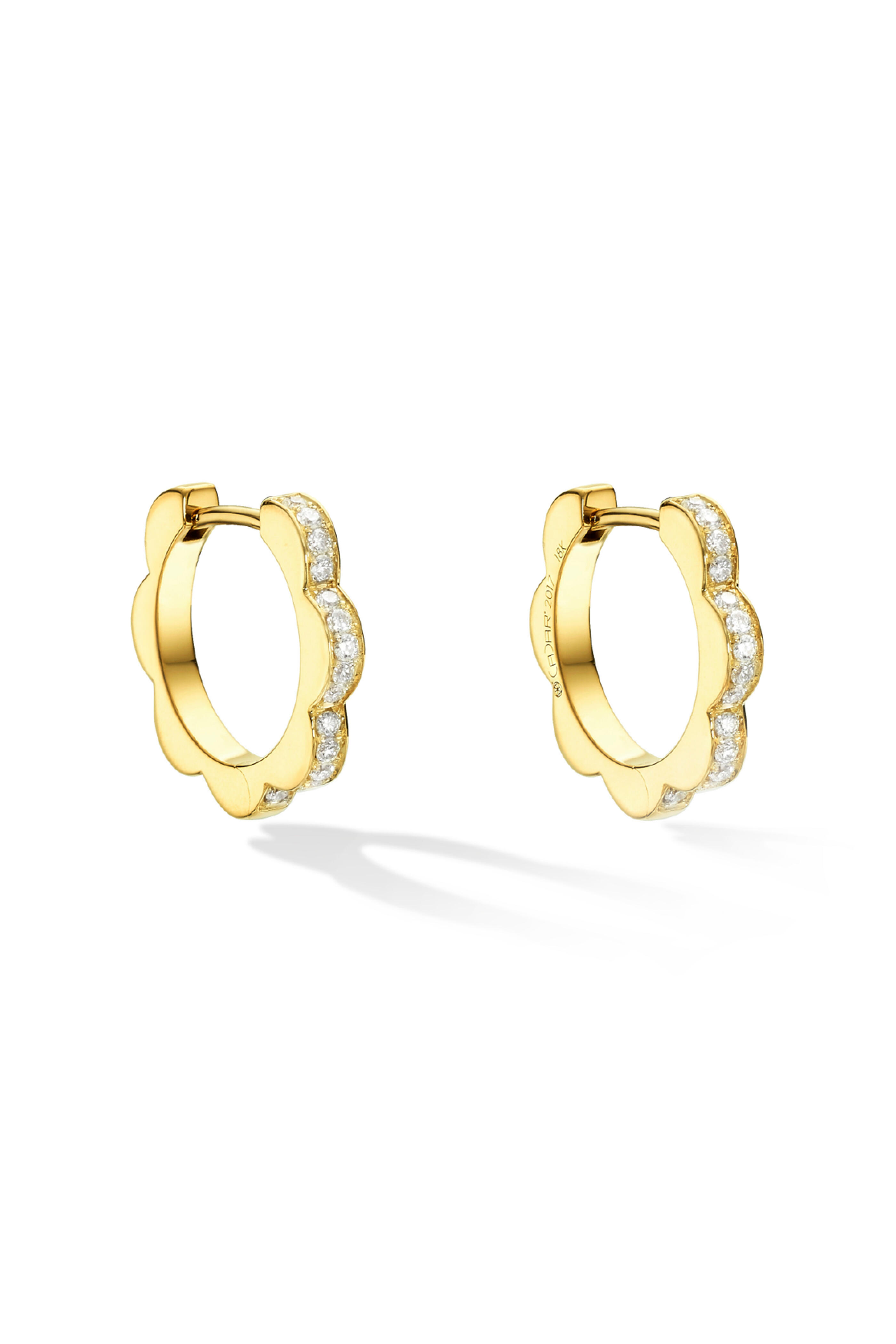 These gold flower hoop earrings measuring 0.5 inches long are perfect as an everyday pair of hoops. The small size also makes them fit for a second or third hole. Check out our large and medium sizes to create your own set.