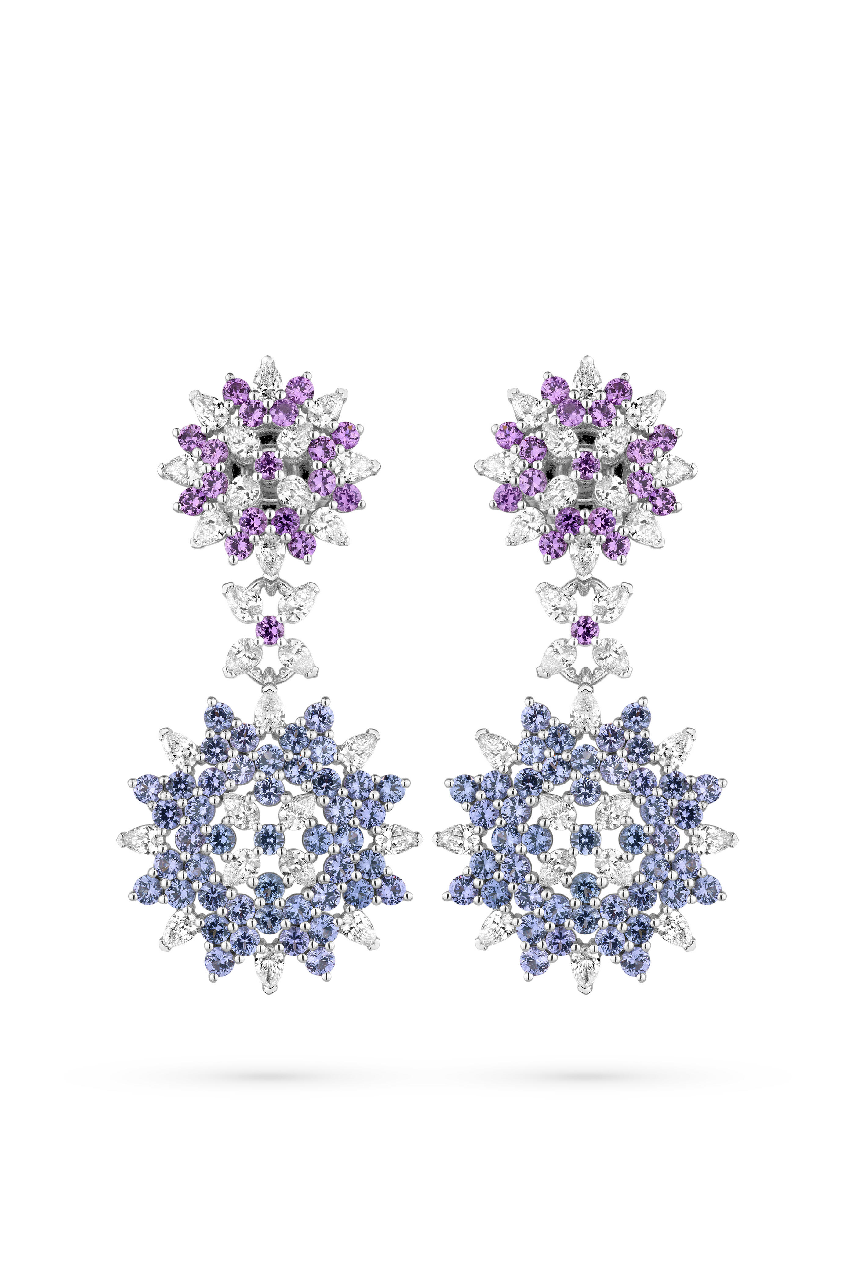 18k White Gold. 2.80 ct Diamond. 3.60 ct Blue Spinel. 1.08 ct Purple Sapphire.