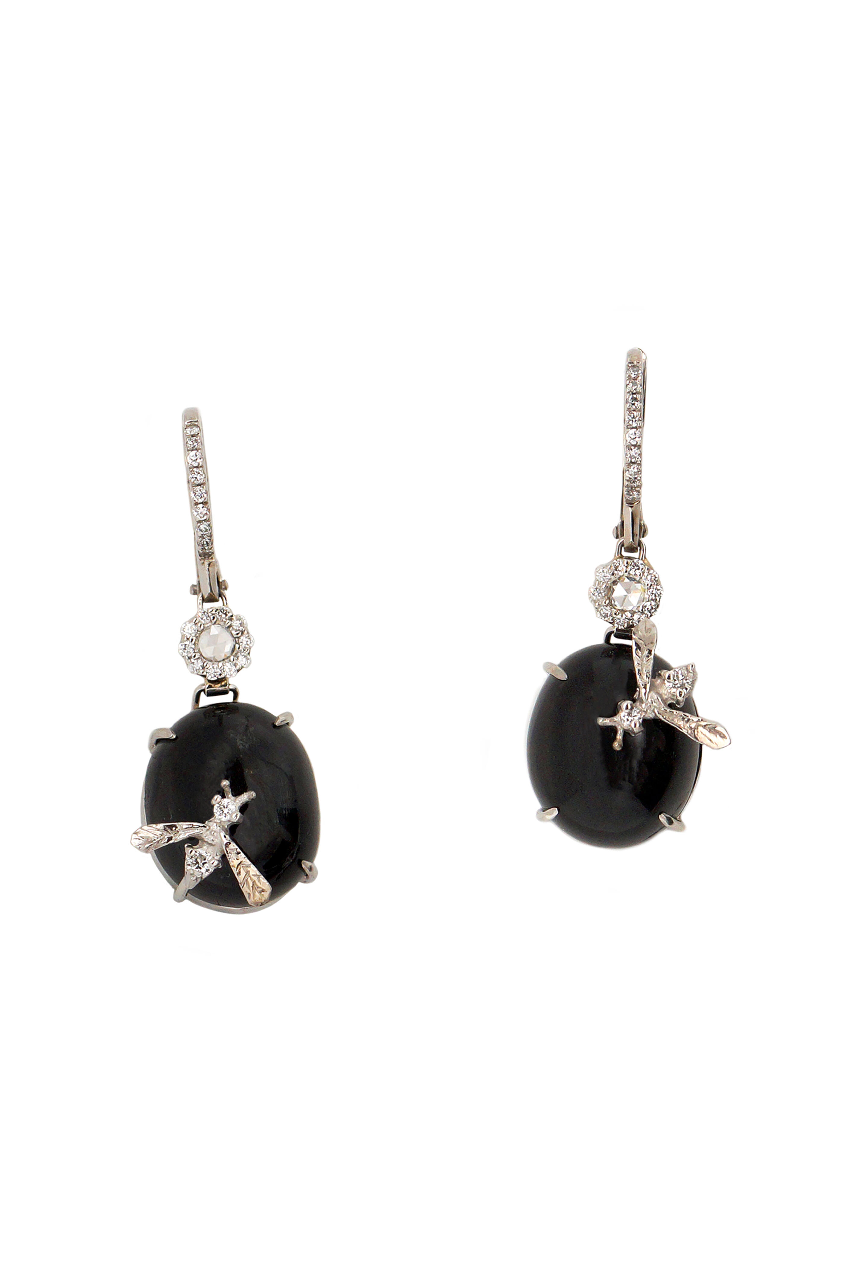 Platinum. Diamond 0.42 total carat weight. Black opal 38.35 total carat weight.