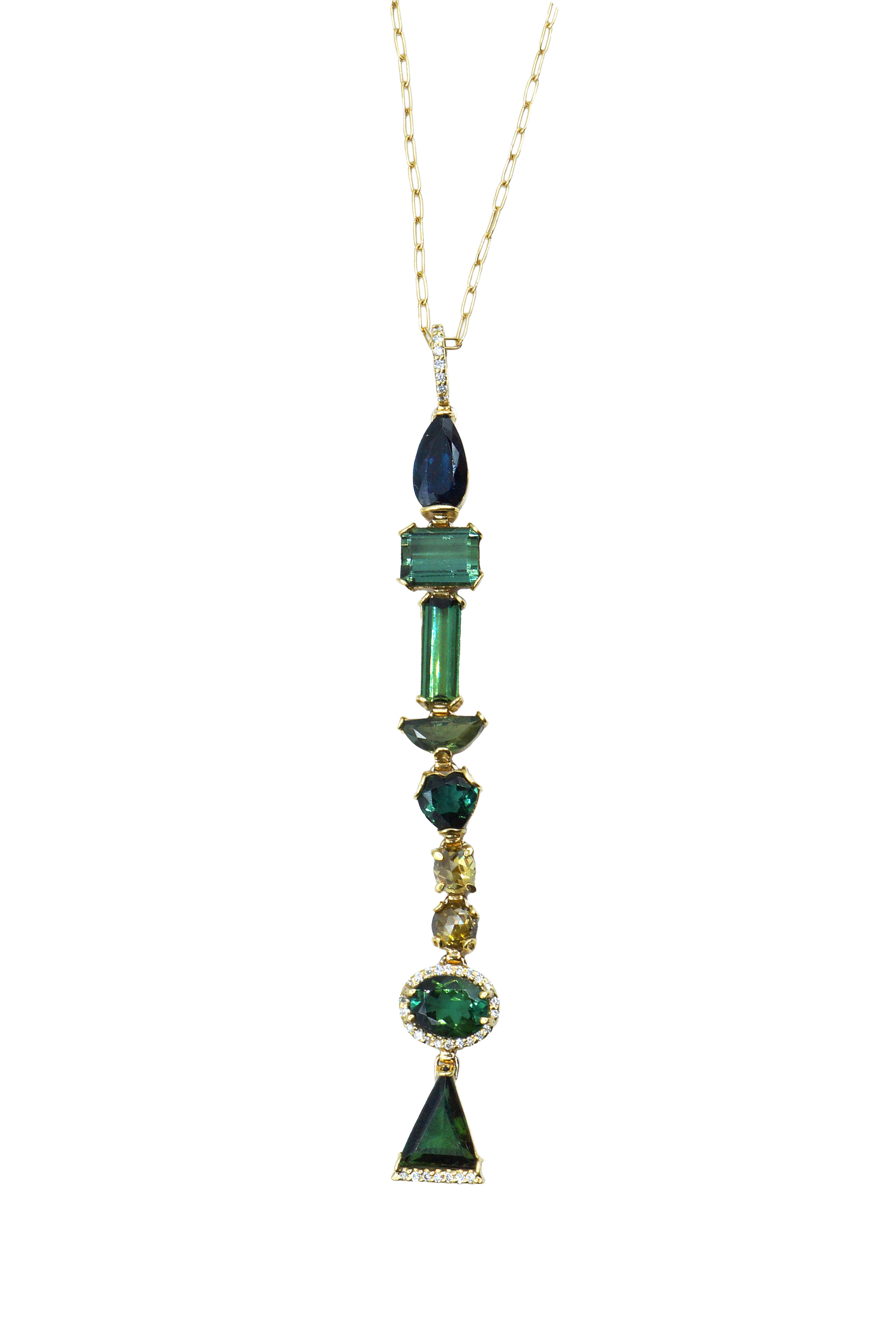 Green Sapphire & Tourmaline Fish Pendant Necklace