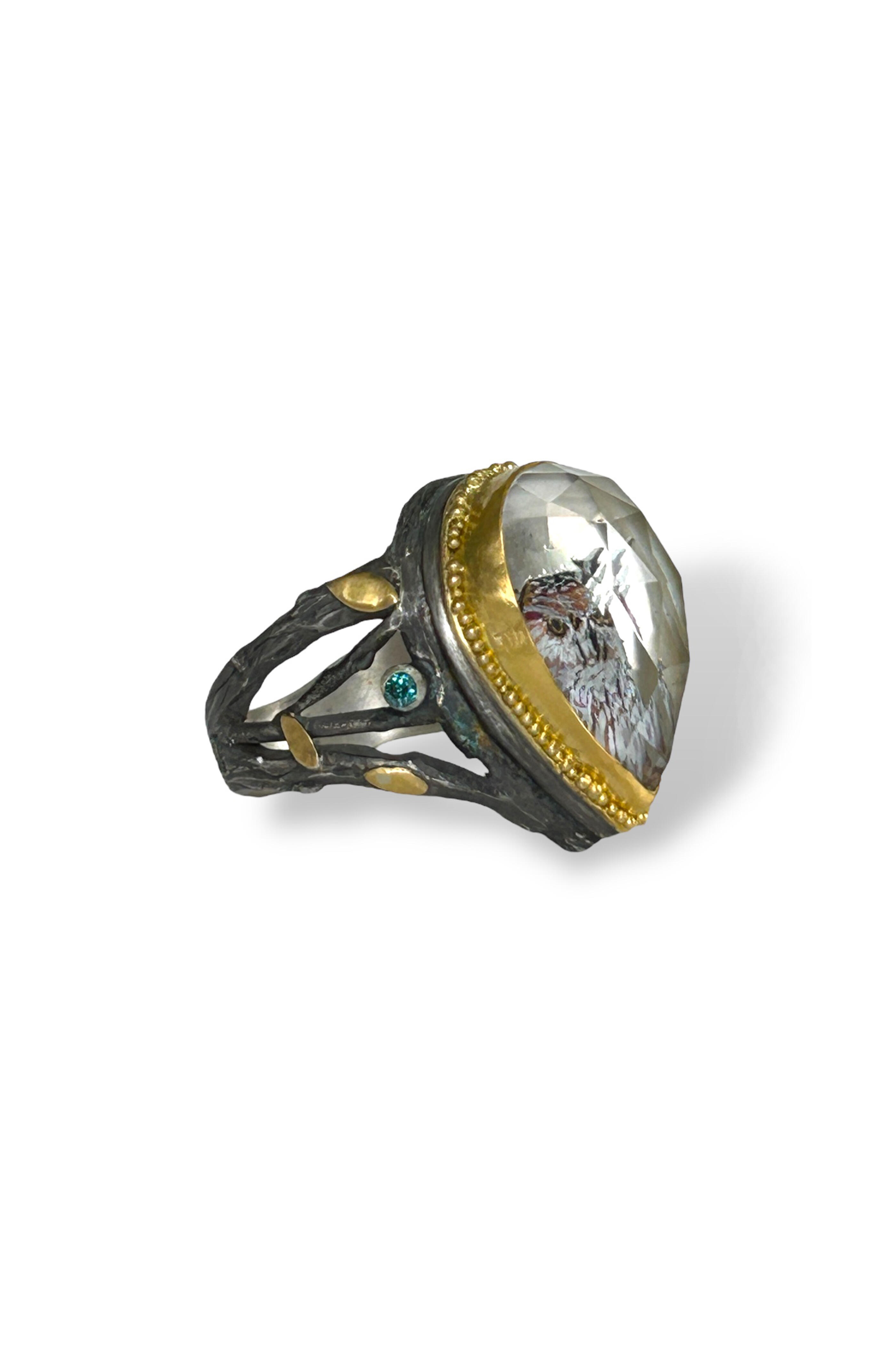 22k Yellow Gold. Sterling Silver. 0.06 ct Blue Diamond.