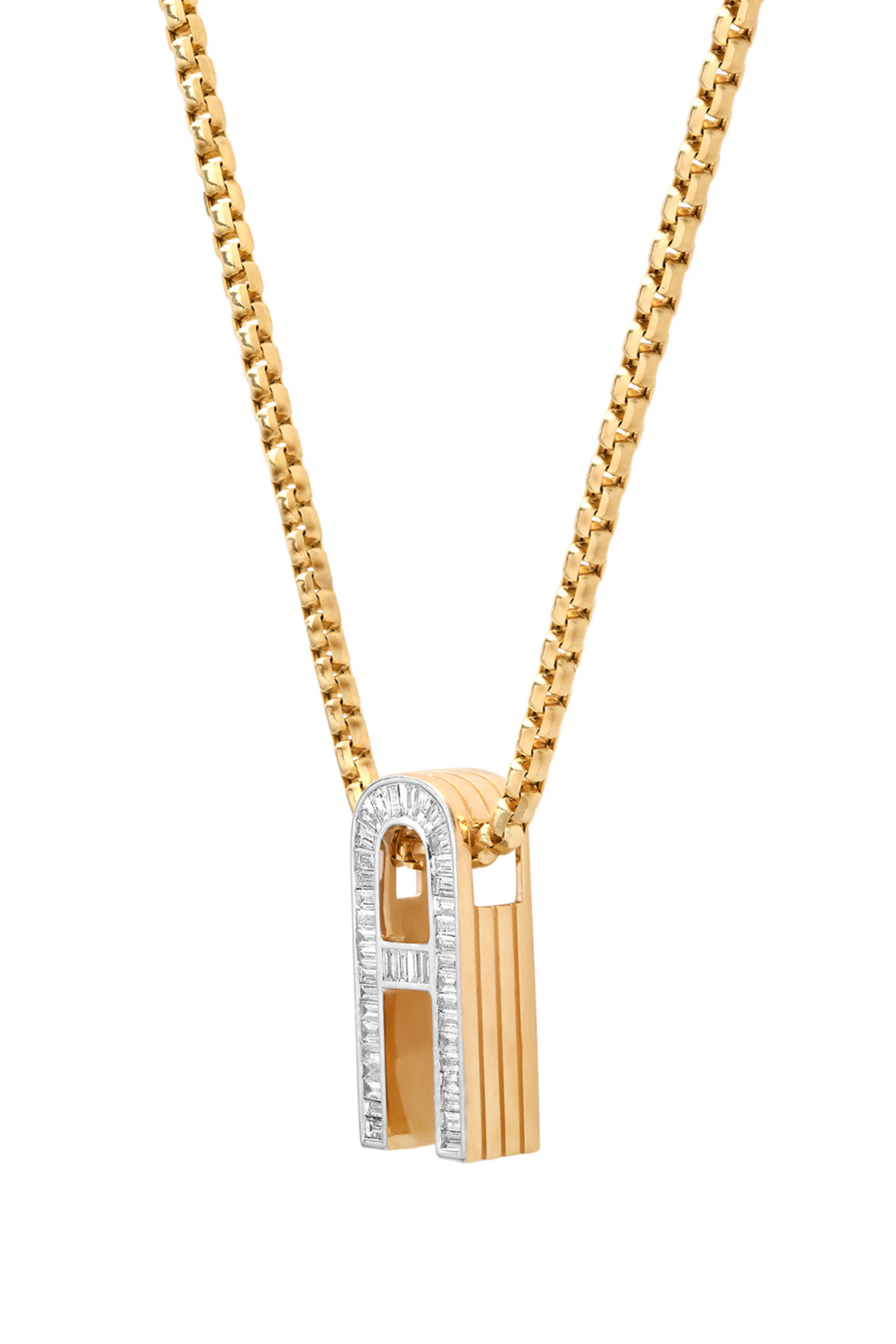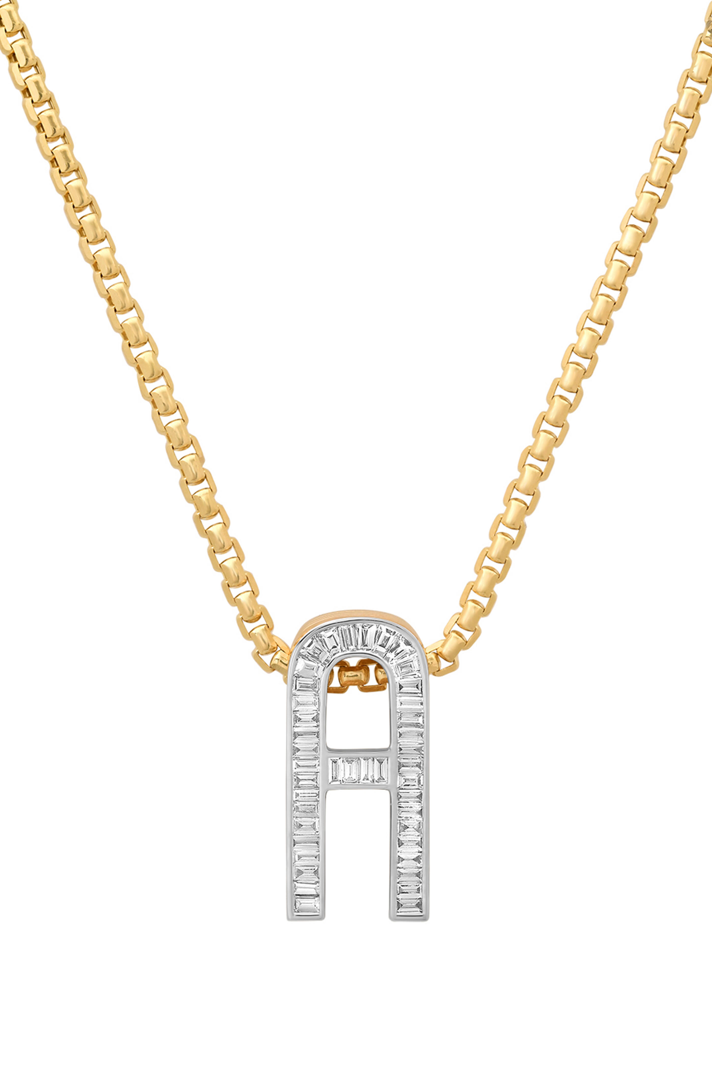 Our slide-on grandsize diamond encrusted initial is a larger version of our classic slide-on letters and set with over 40 baguettes.