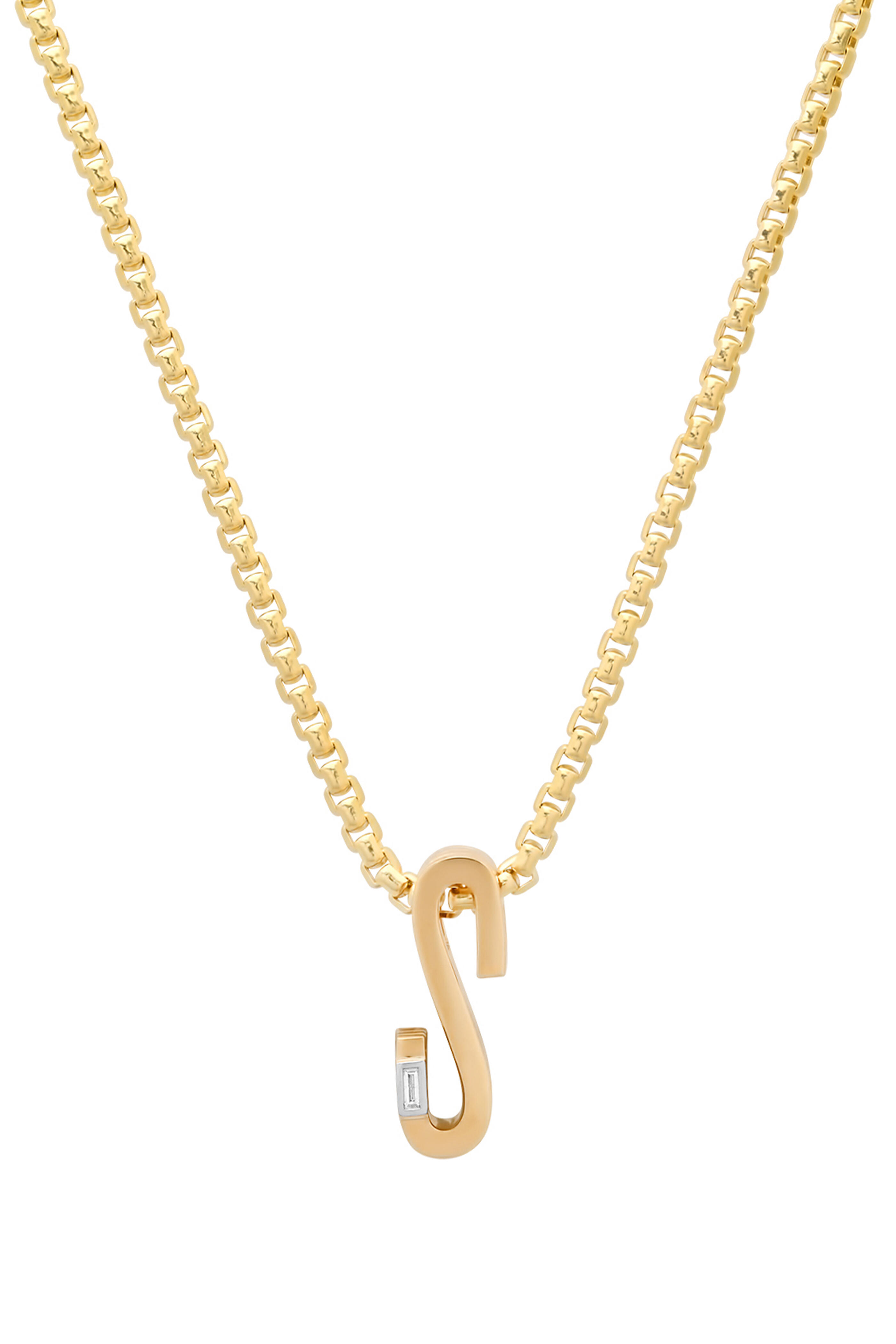 Our ribbed number pendant is handcrafted in 14k gold, with textured sides, and a diamond baguette.