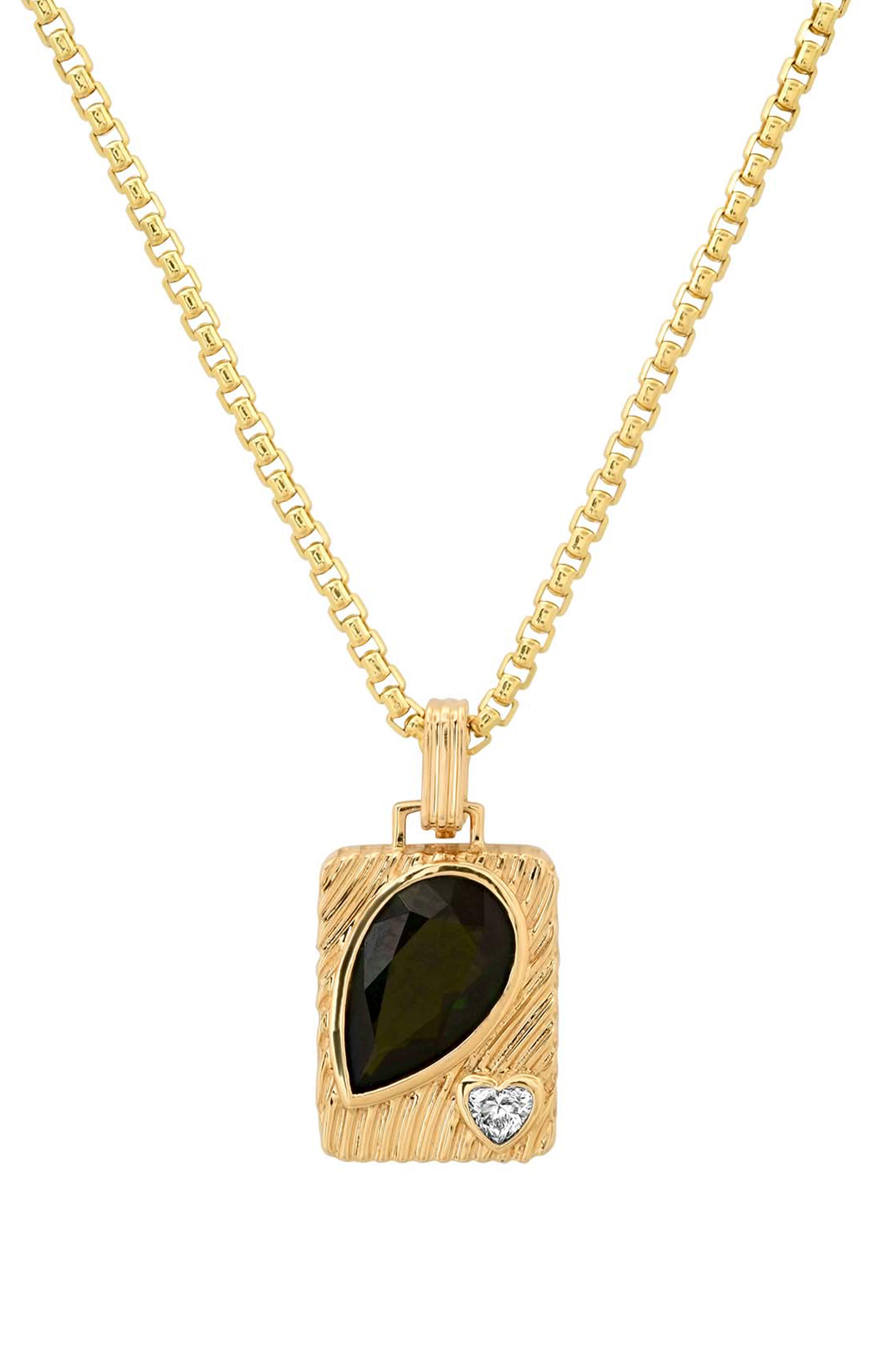 The ripple heart amulet is crafted in 14k gold featuring our rippled texture and set with a vibrant hand cut pear gemstone and heart diamond.