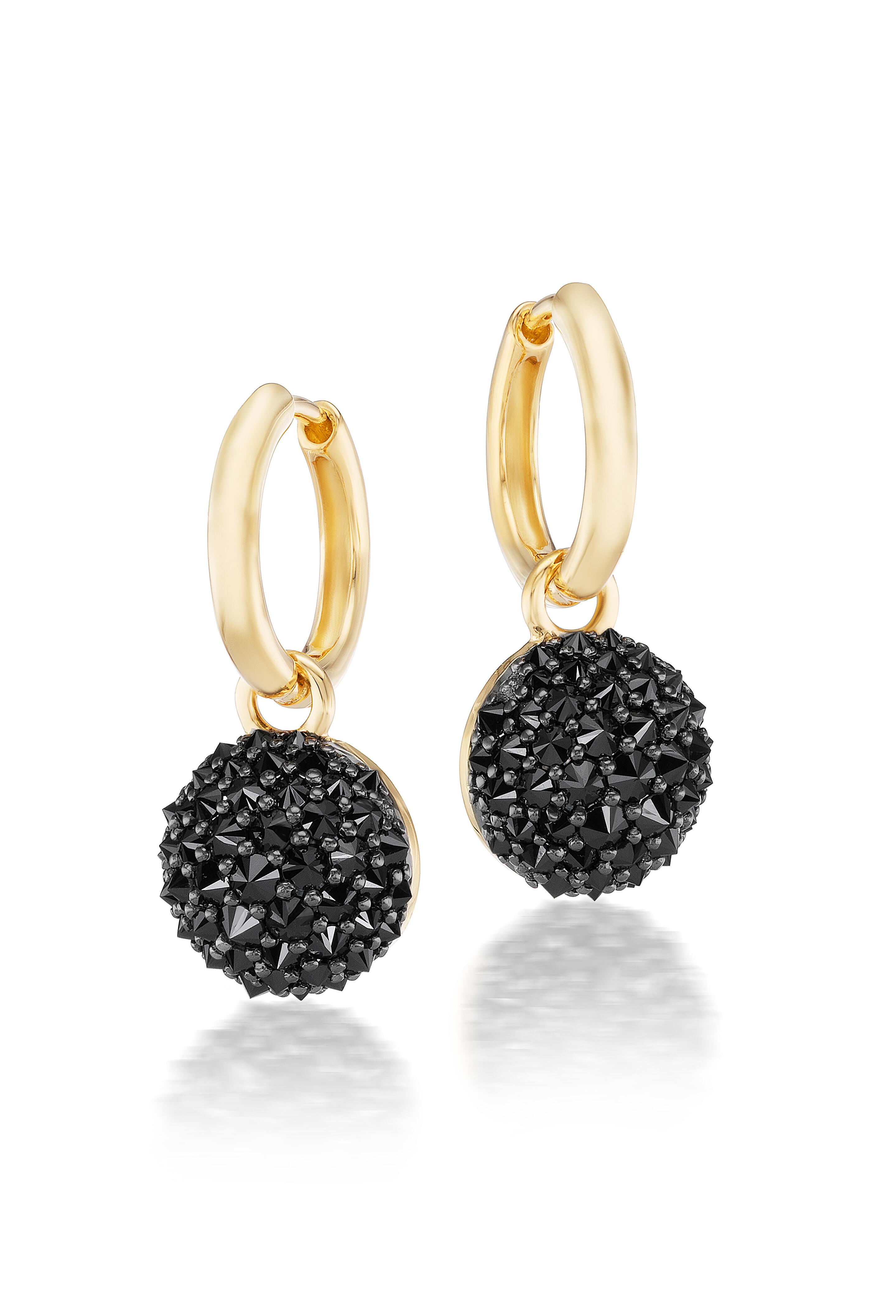 18k Yellow Gold Black Diamond Detachable Mini Hoop