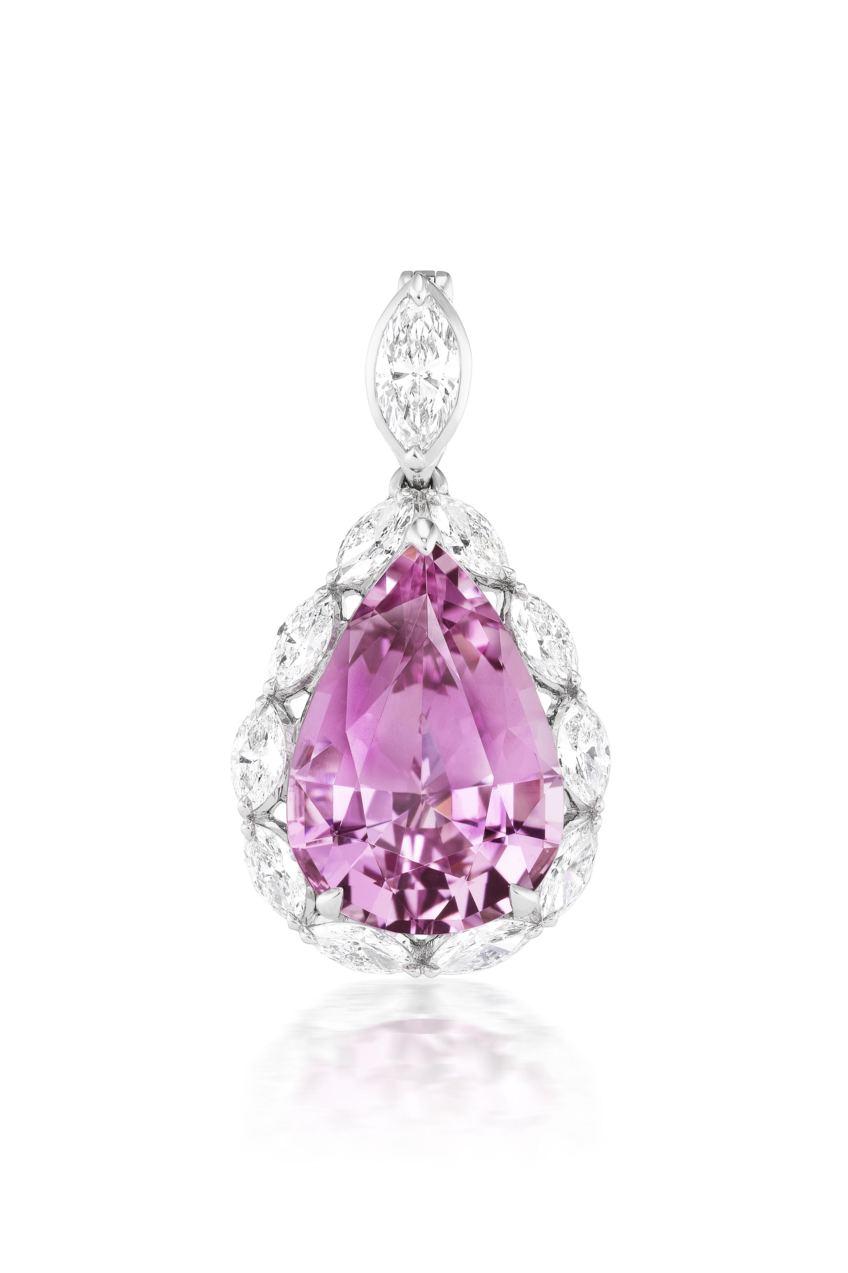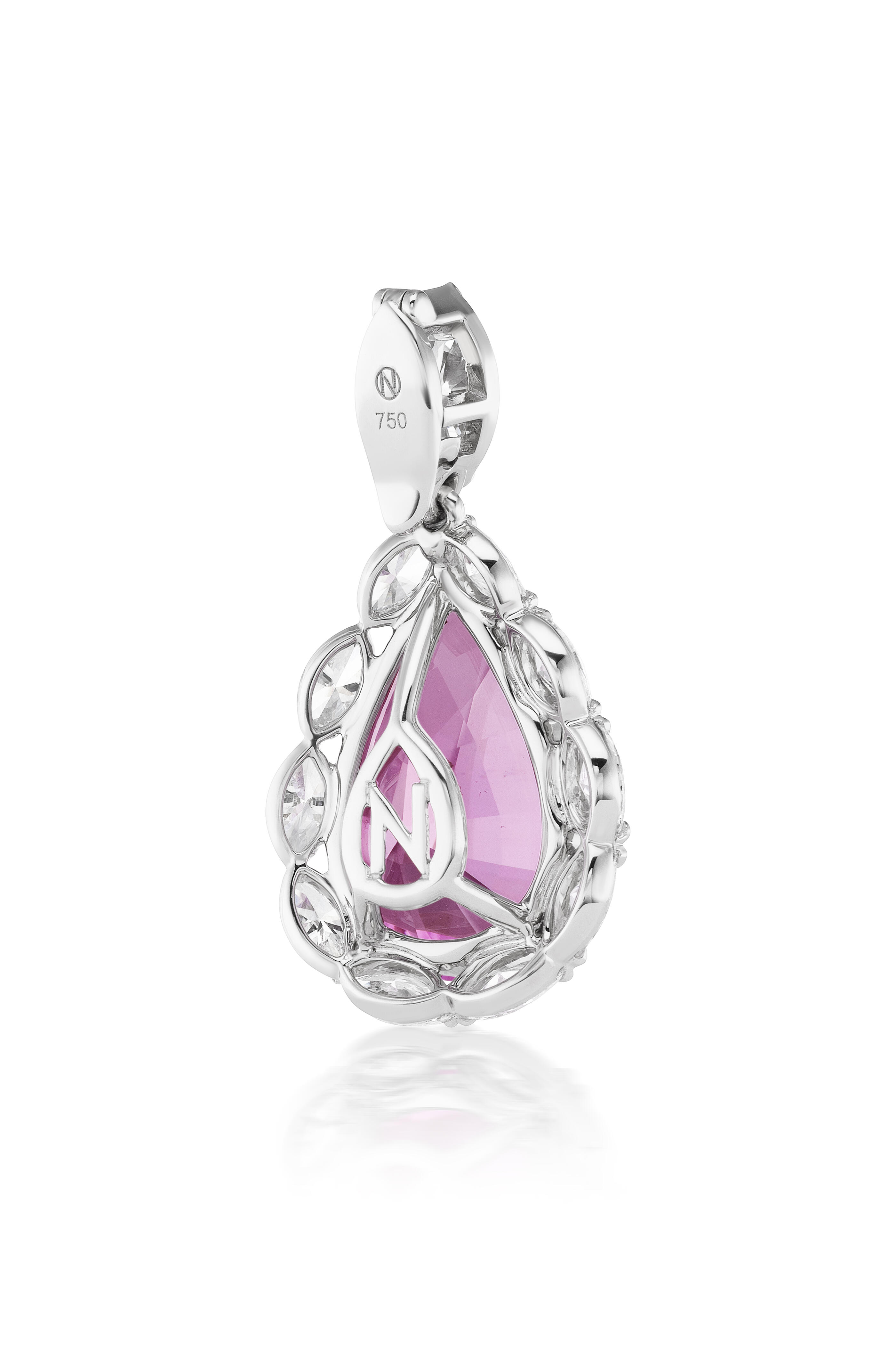 18k White Gold Pink Topaz and Diamond Pear Pendant