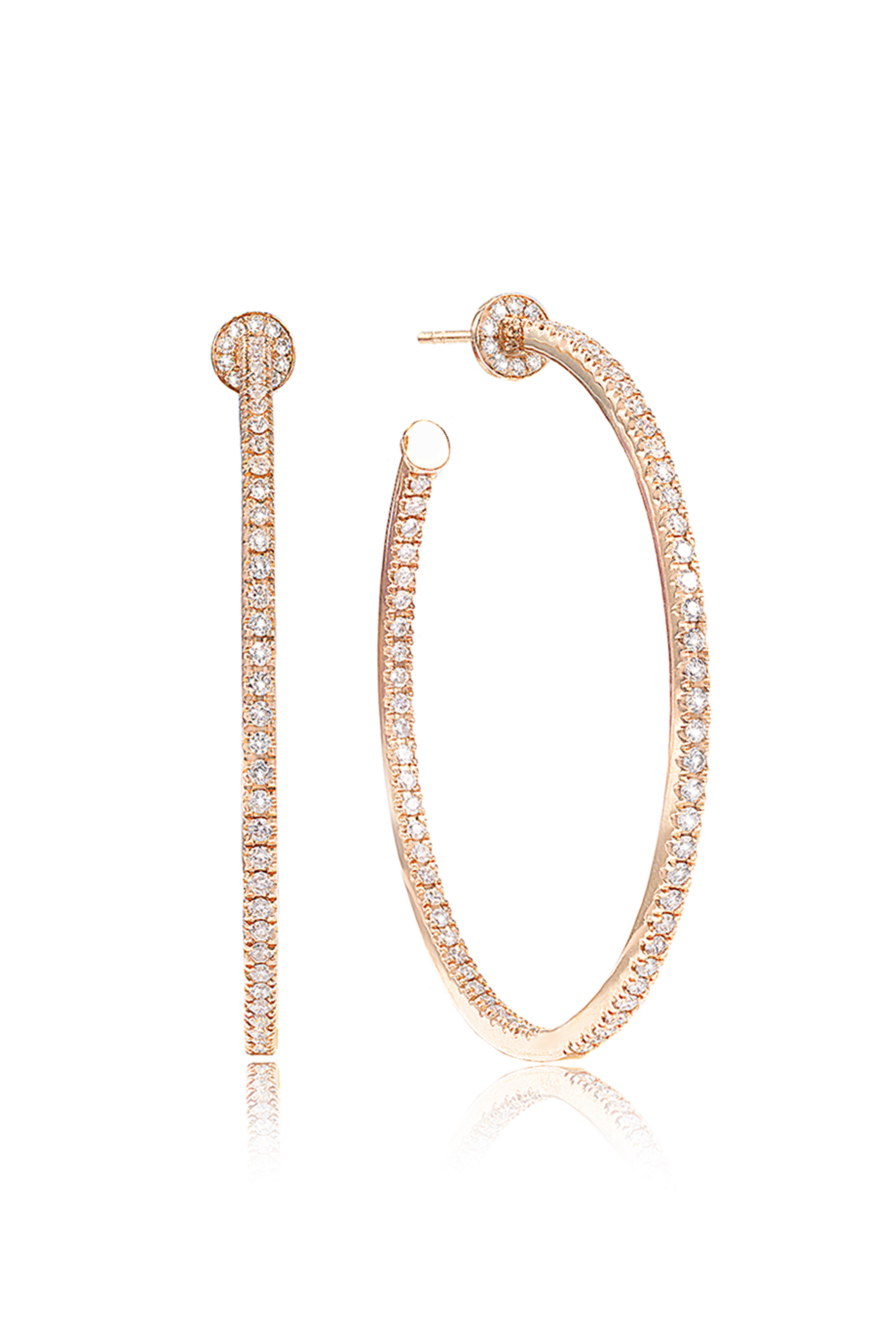 18-karat Rose Gold Diamond 2-inch Hoop Earrings
