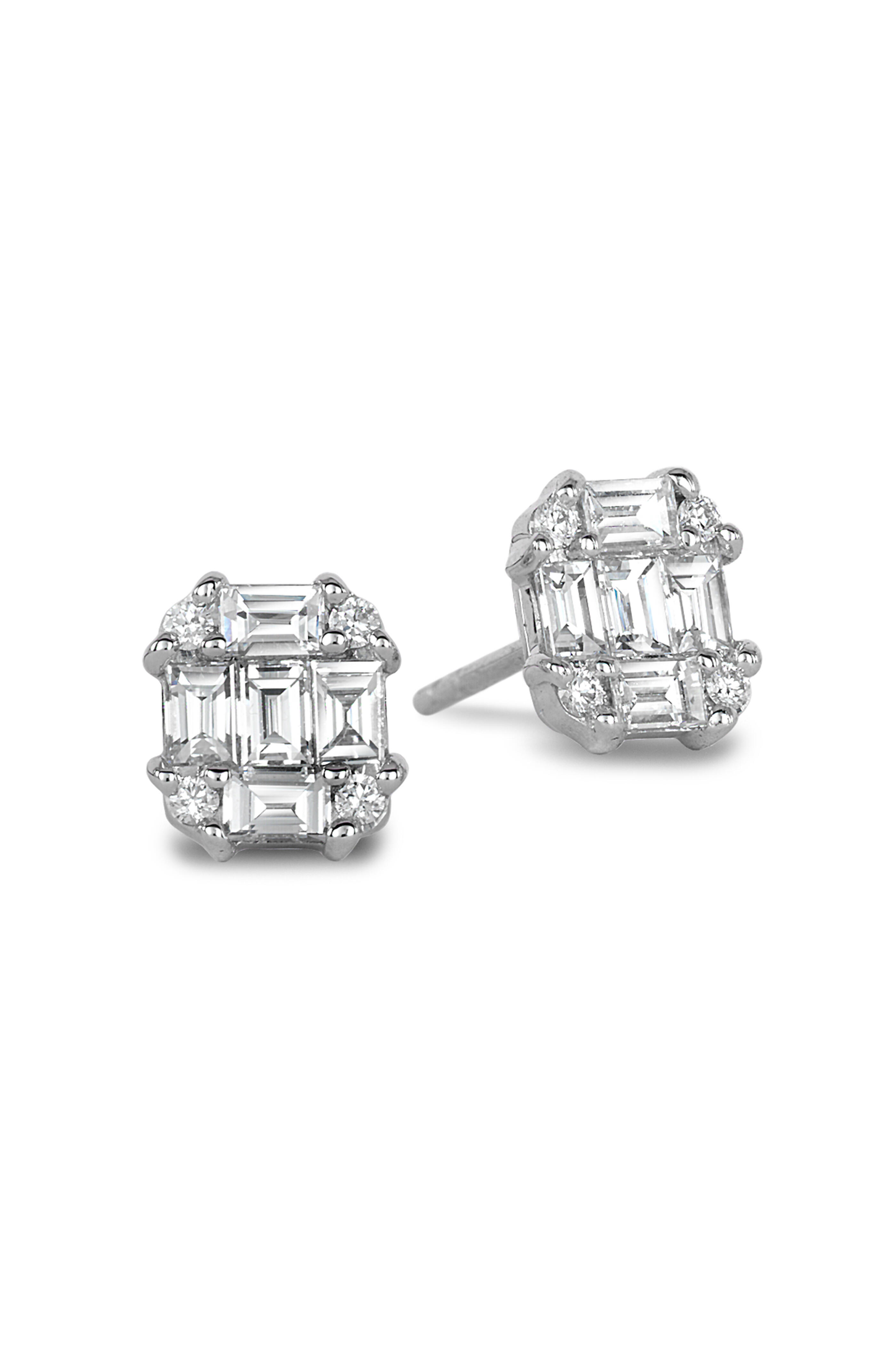 These octagon stud earrings feature invisibly set baguette-cut white diamonds, arranged to create the appearance of a larger, continuous surface of light. The geometric design feels both classic and current. Crafted in 18K white gold, they offer a refined sparkle with everyday ease.