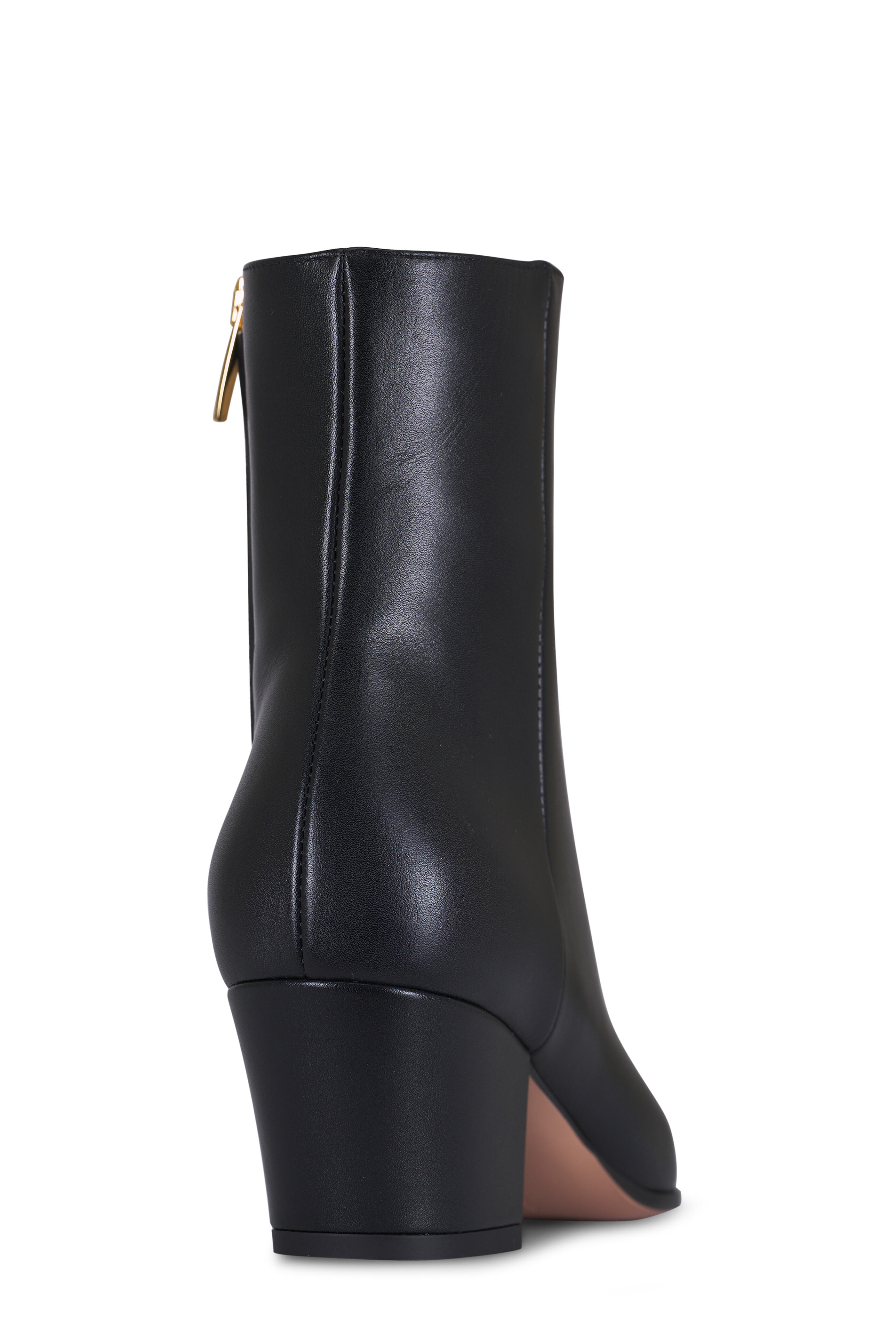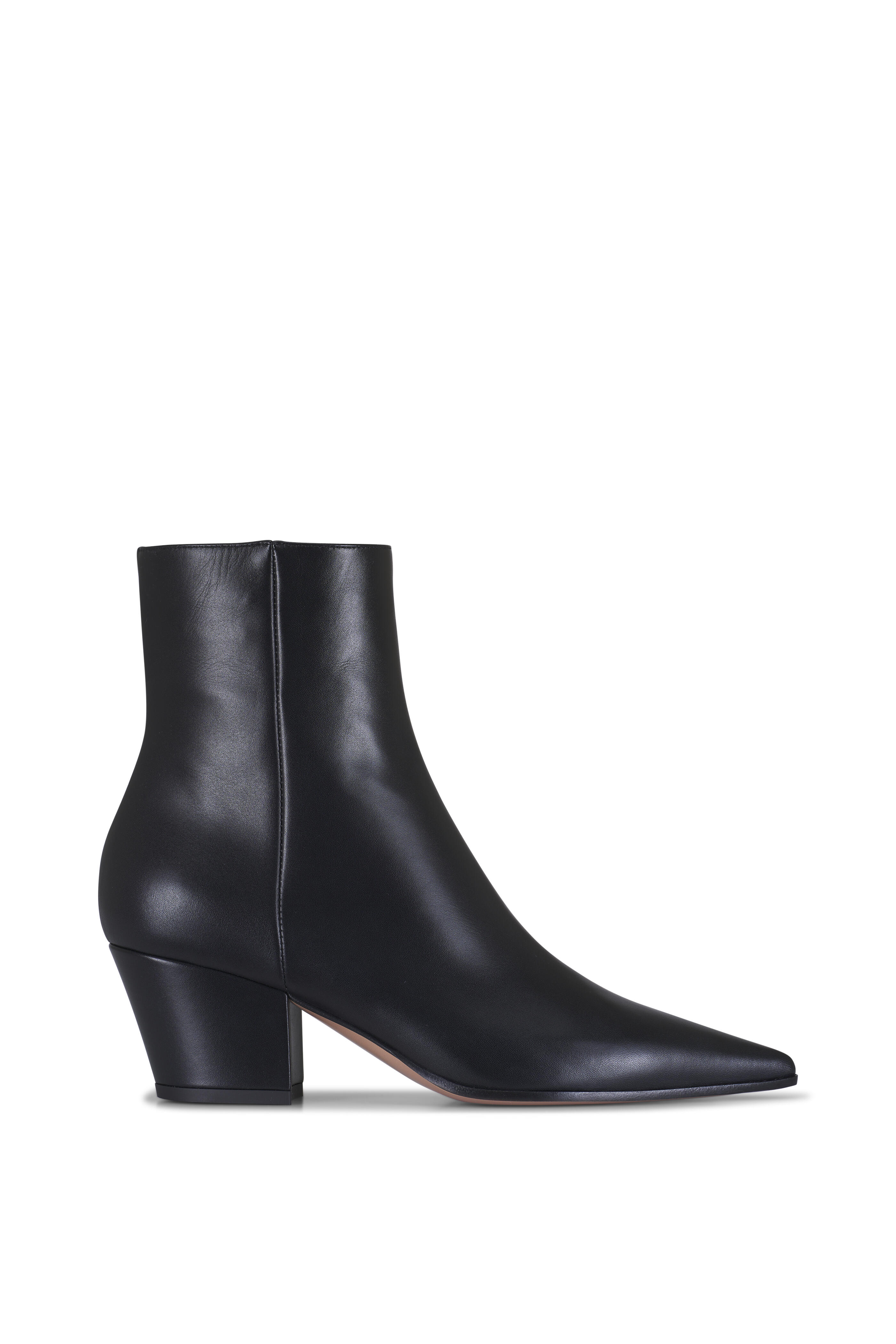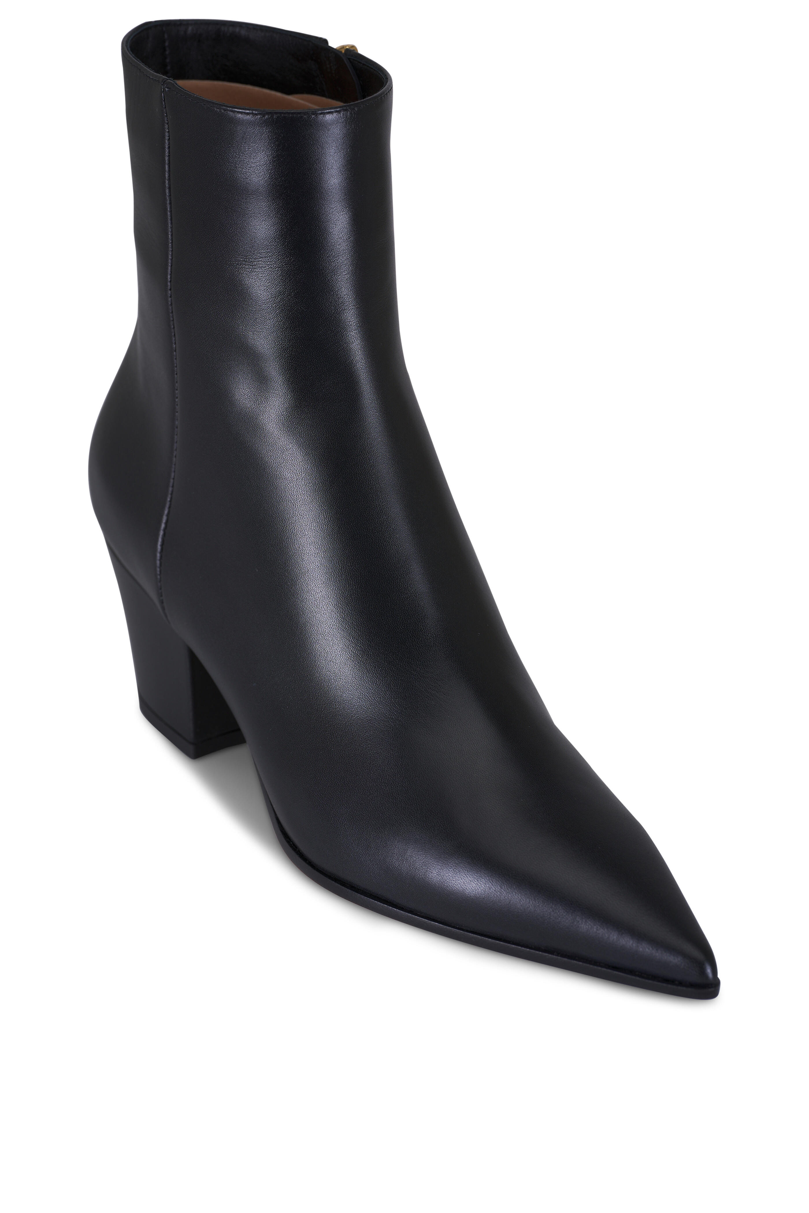 Leather upper. Pointed toe. Side zip closure. Self covered block heel. Leather lining and insole. Made in Italy. Heel measurement: 55mm.