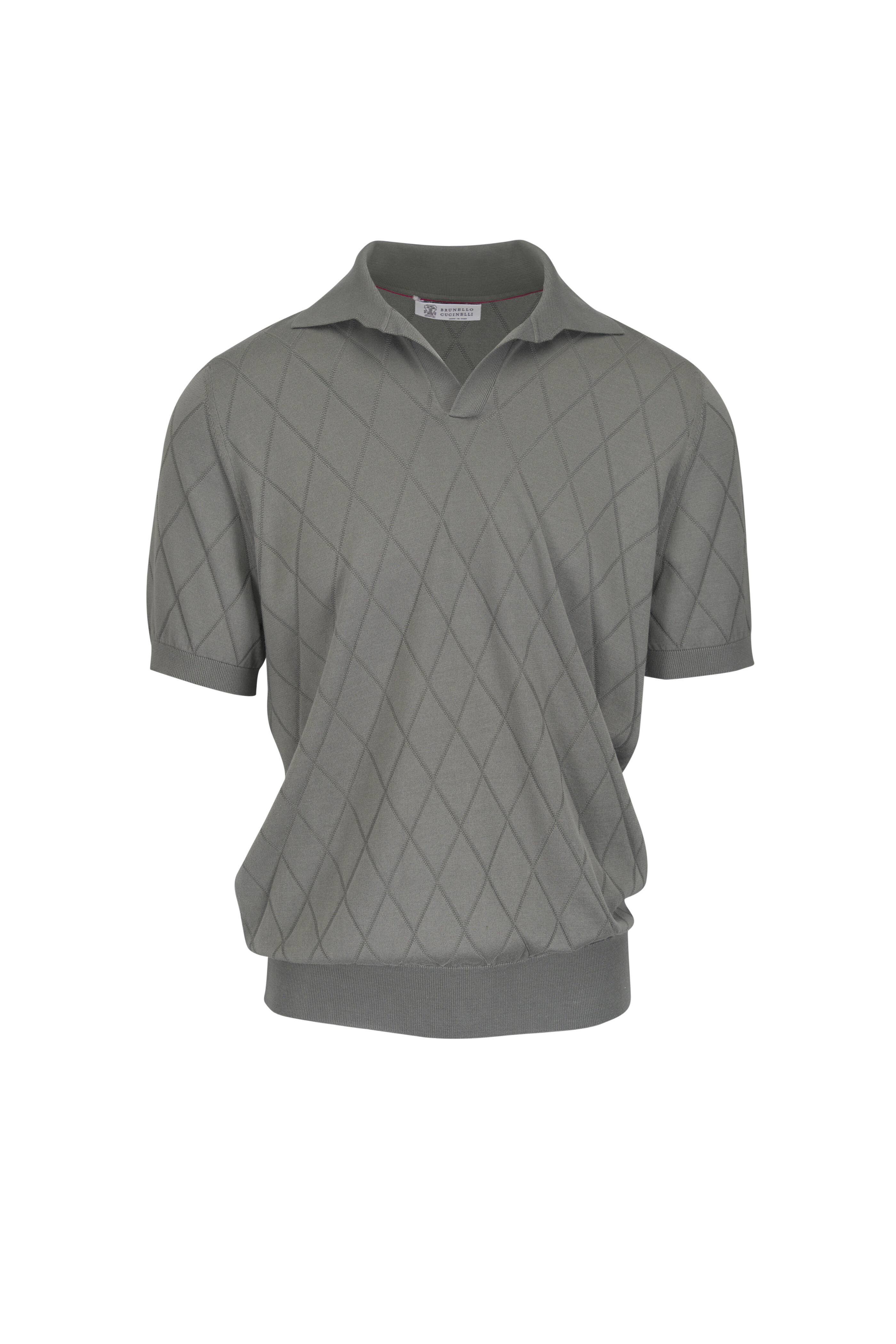 Johnny collar. Ribbed trims. Made in Italy. 100% cotton. Hand wash.