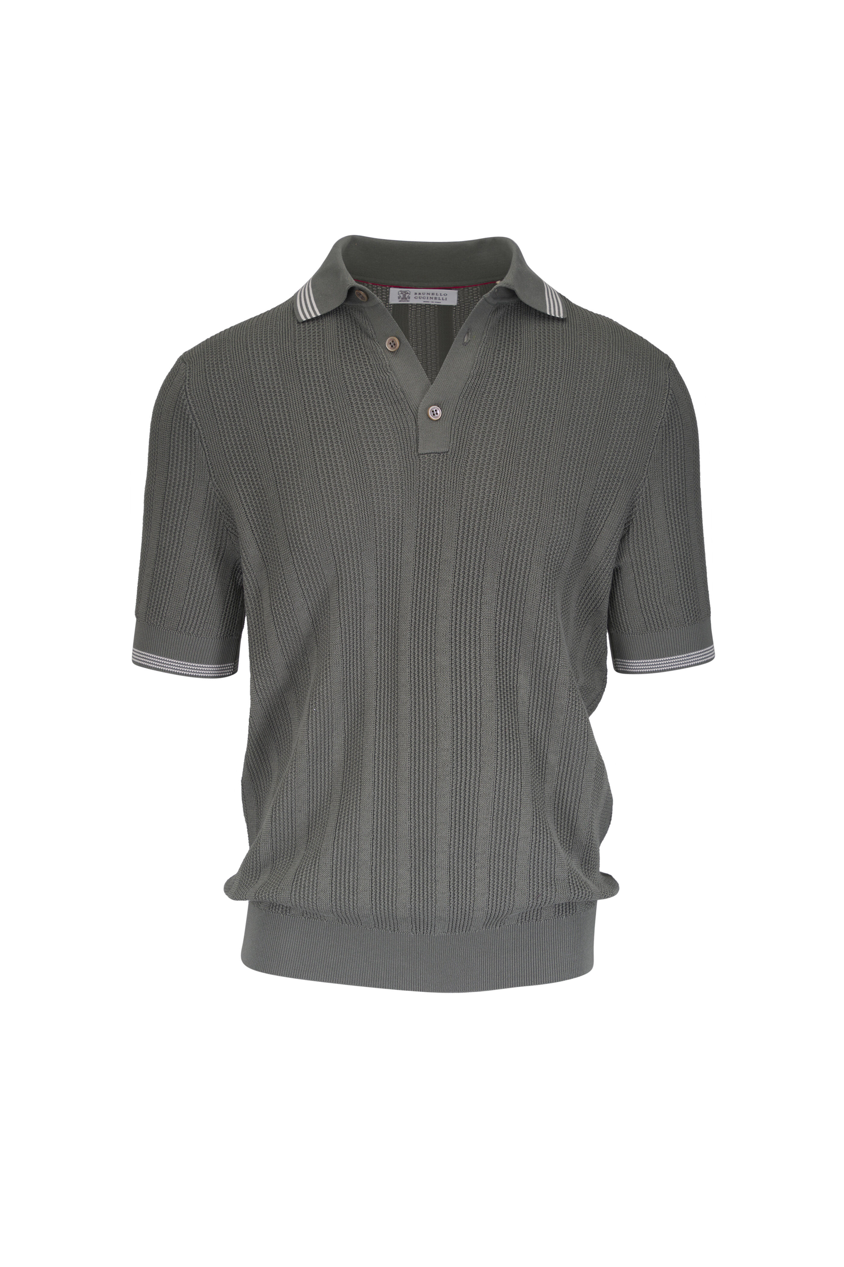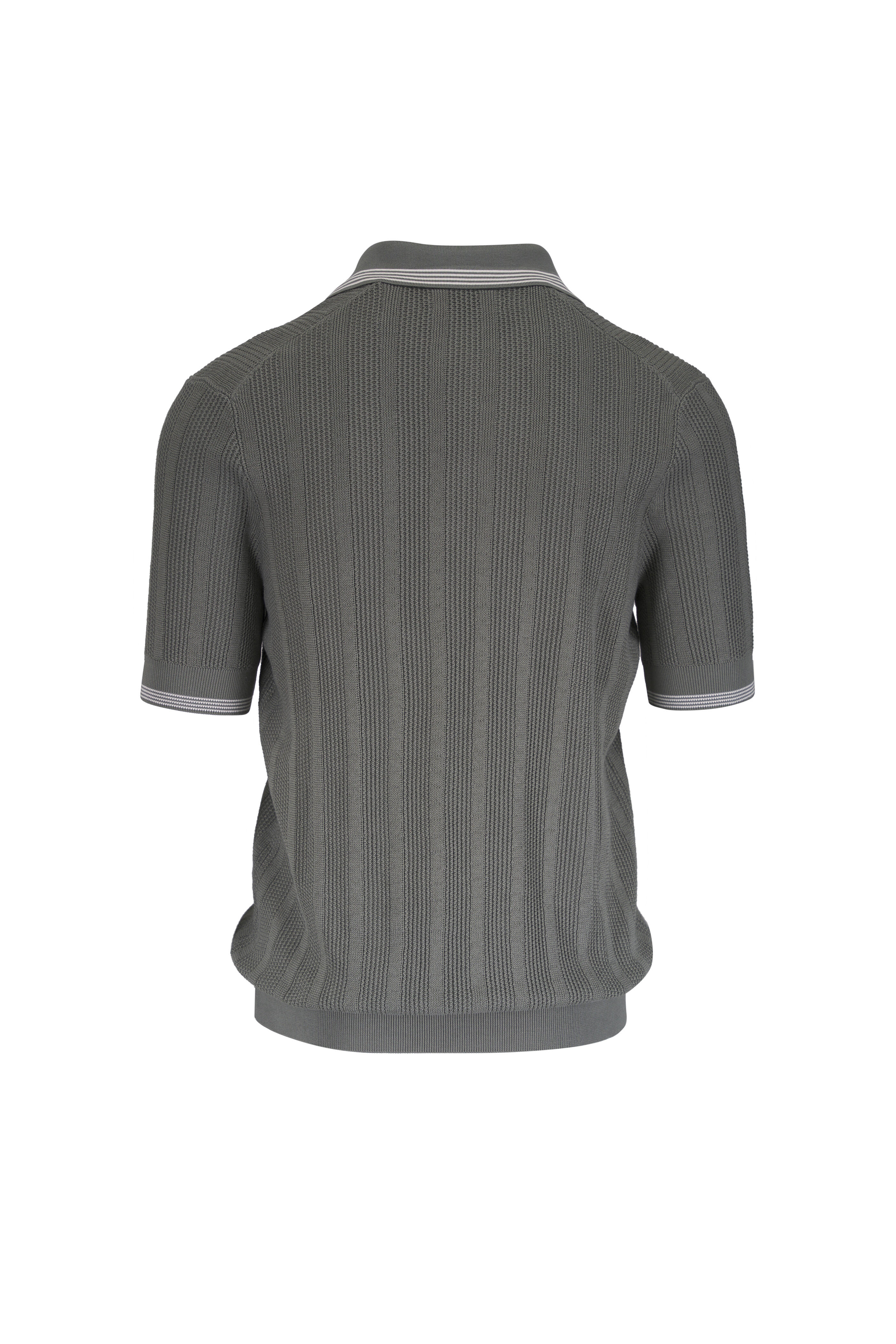 Olive Green English Rib Knit Polo Sweater