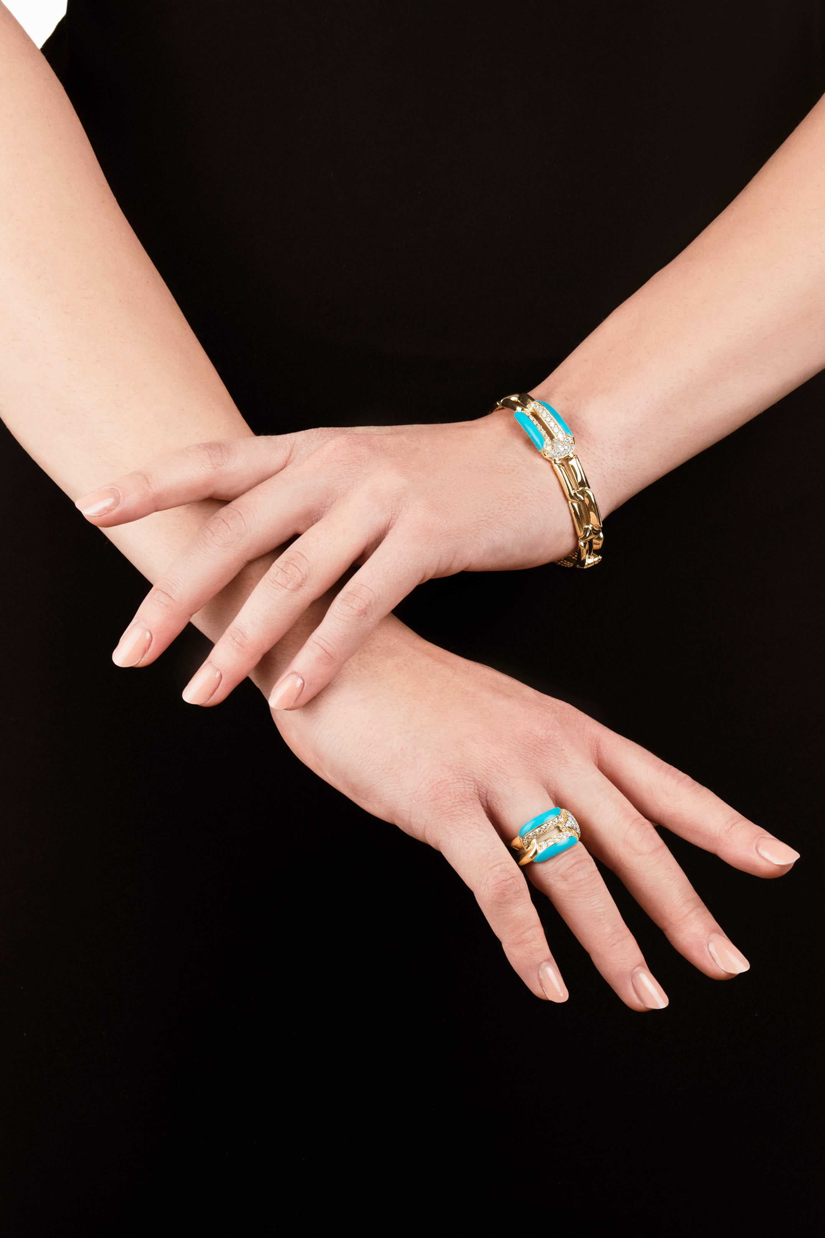 18k Yellow Gold Arco Turquoise & Diamond Bracelet