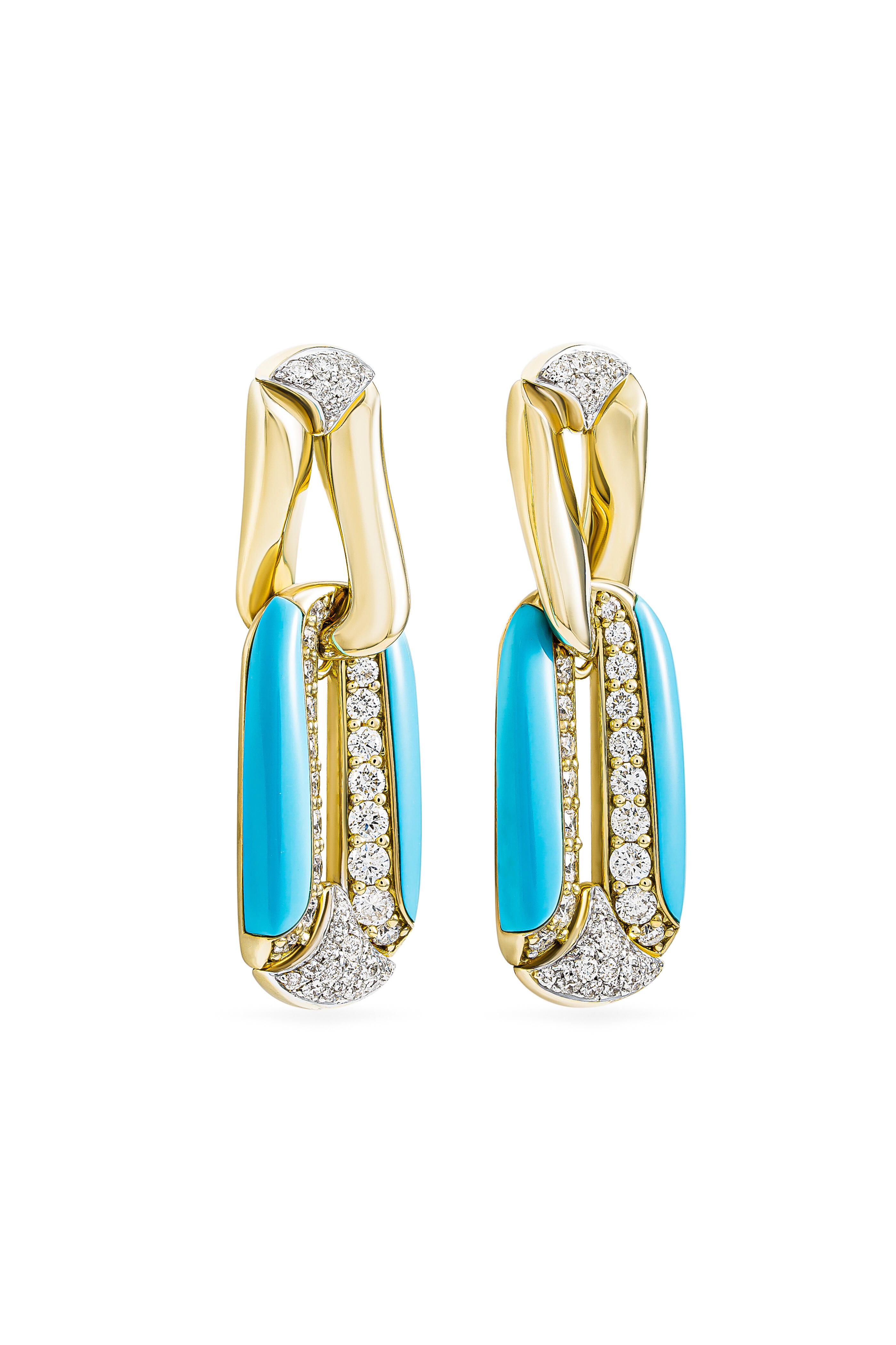 18k Yellow Gold Arco Diamond & Turquoise Earrings