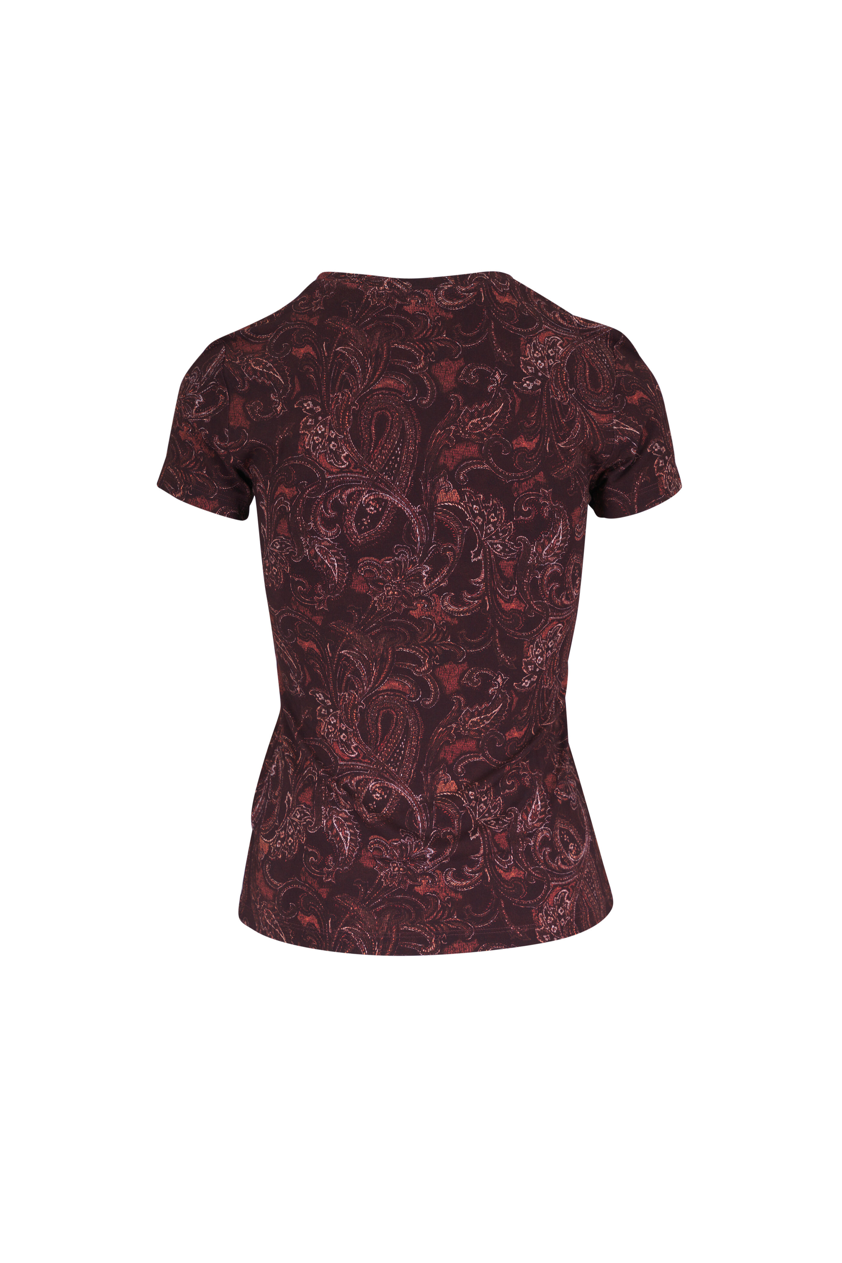 Ressi Brown Etched Paisley Print Fitted T-Shirt
