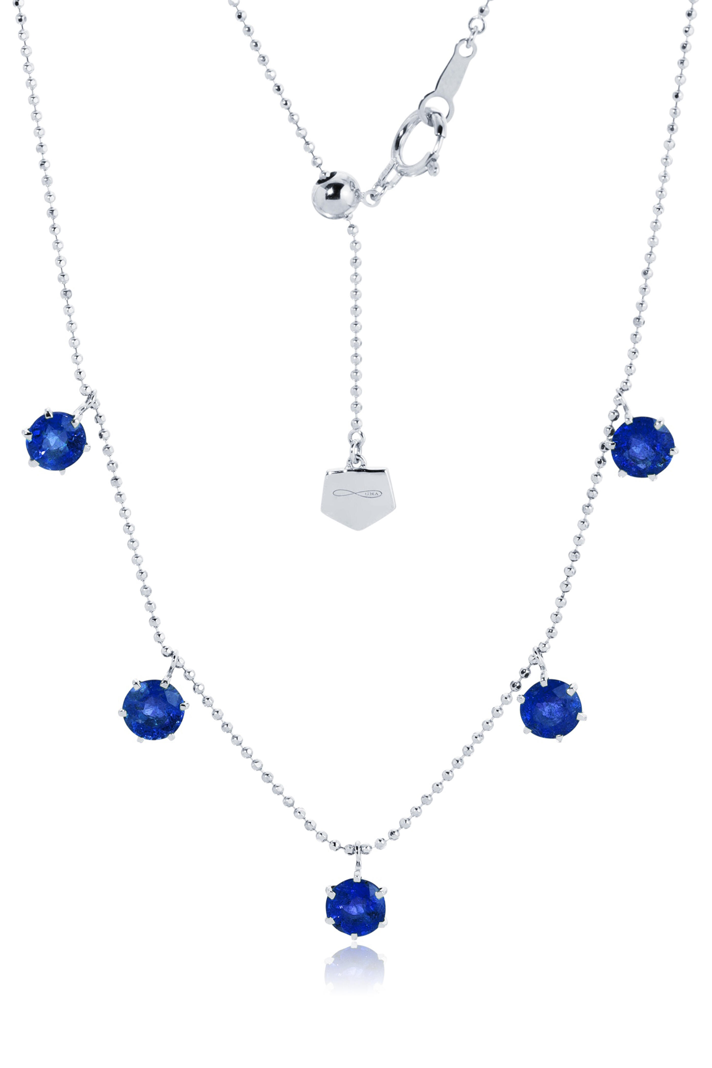 18k White Gold Blue Sapphire Floating Necklace