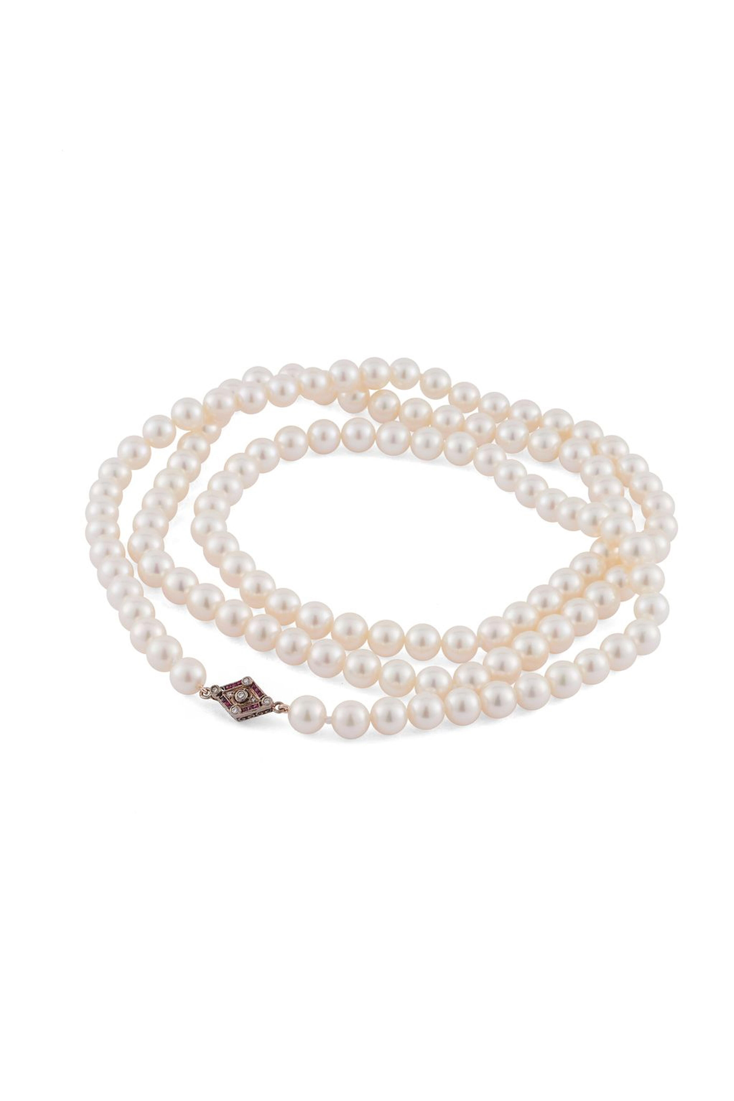 Platinum. Diamond. Pearl. Double strand. Beaded. Vintage clasps. Made in the USA.