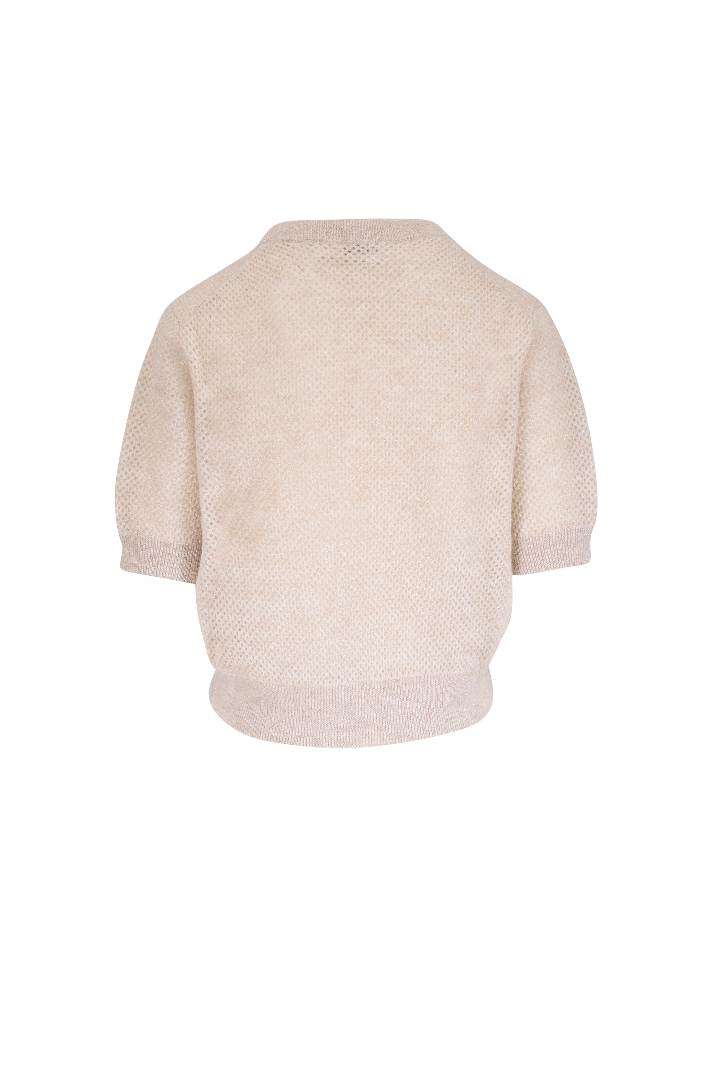 Crew neckline. Ribbed trims. Made in Italy. 46% mohair, 37% polyamide. Dry clean.
