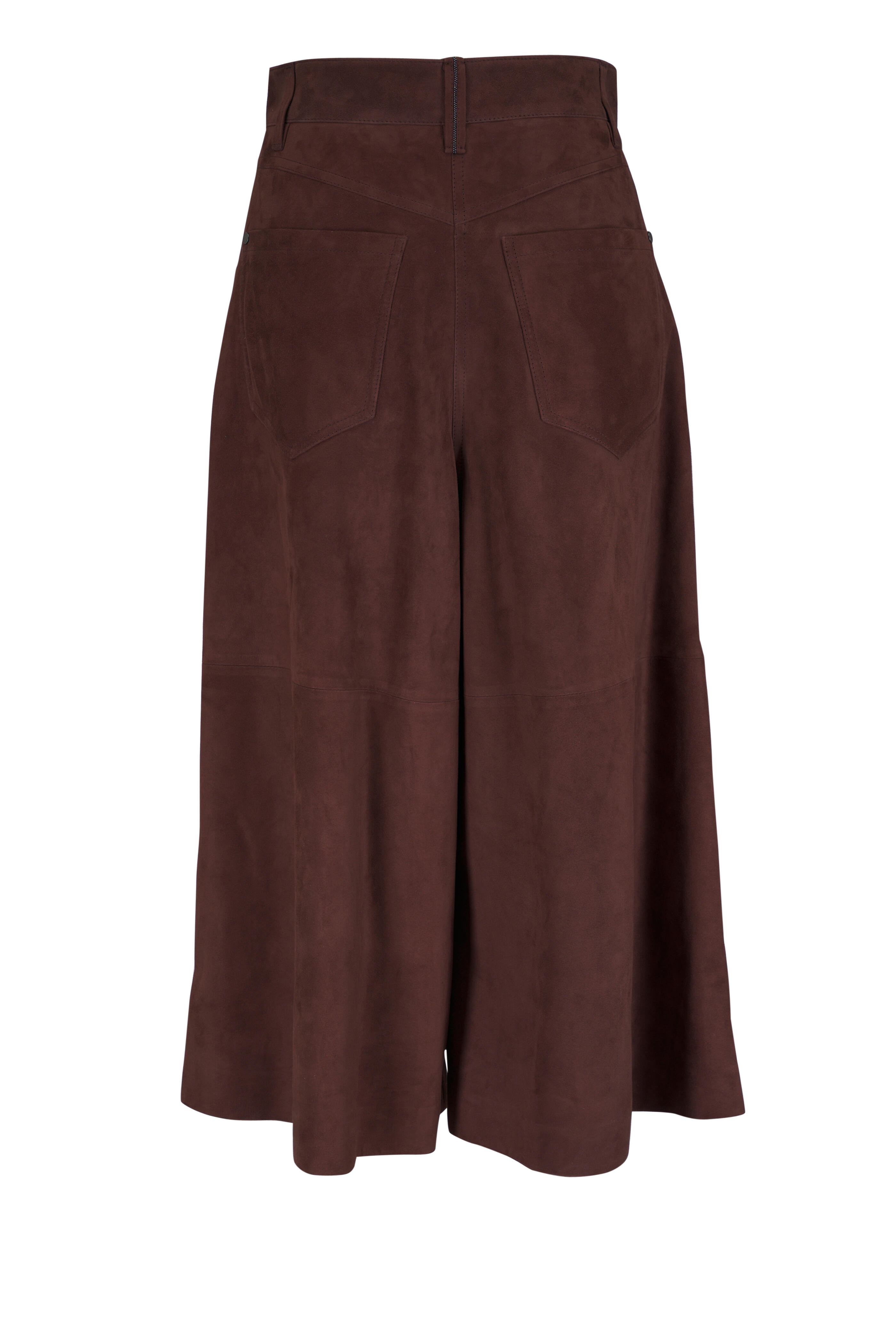 Specialist clean. Zip fly; button closure. Banded waist; belt loops. Five pocket styling. Monili detailing. Made in Italy. Inseam: 17". 100% suede; lined.