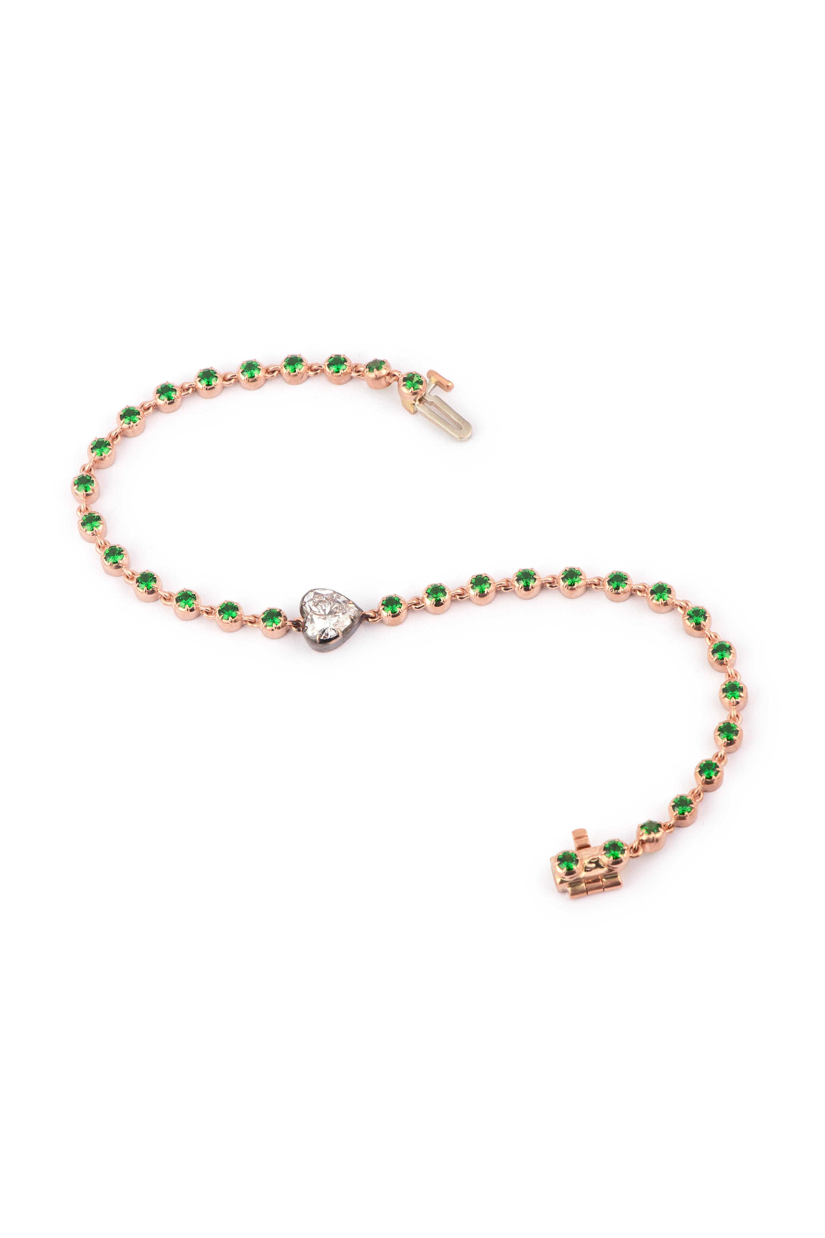 14k Yellow Gold Tsavorite Diamond Heart Bracelet