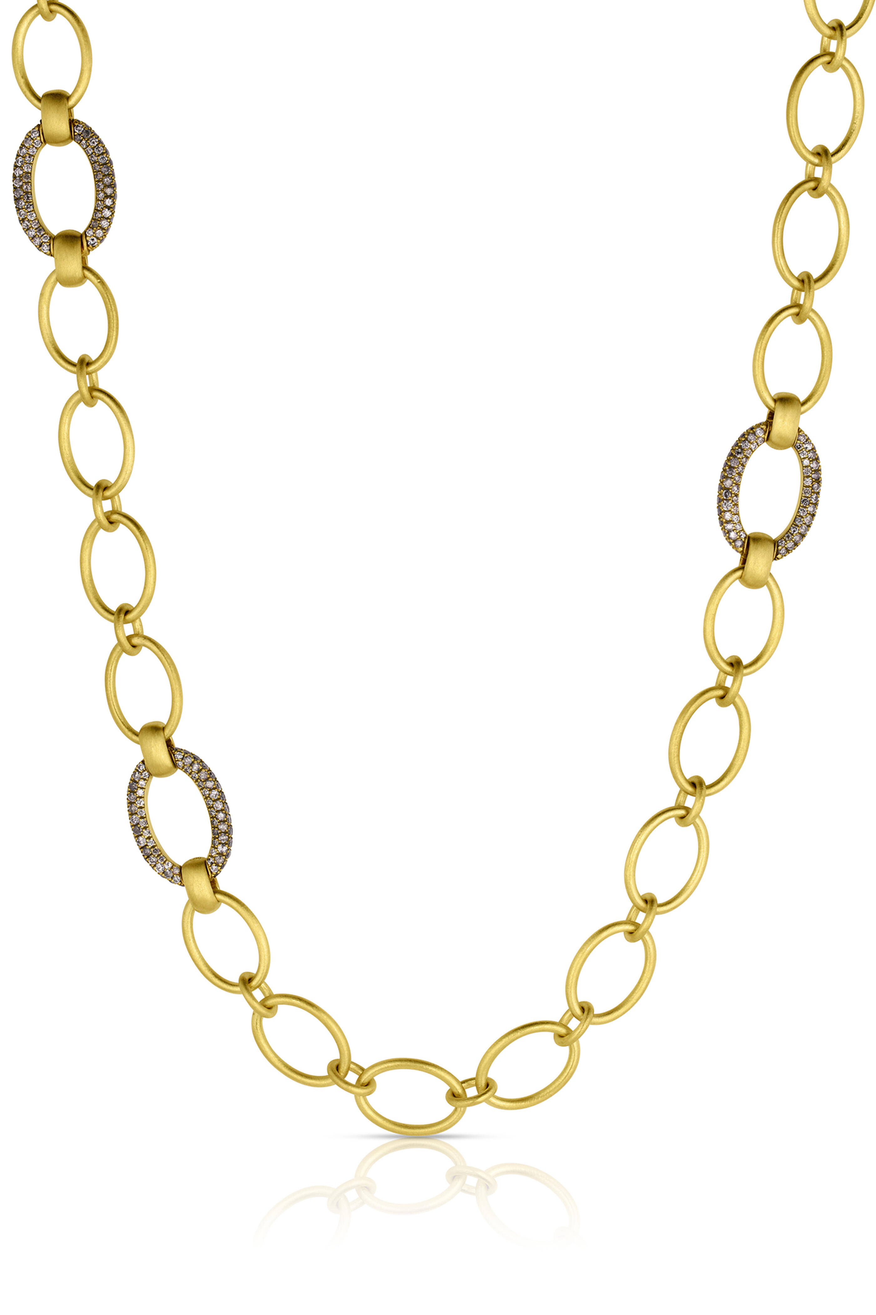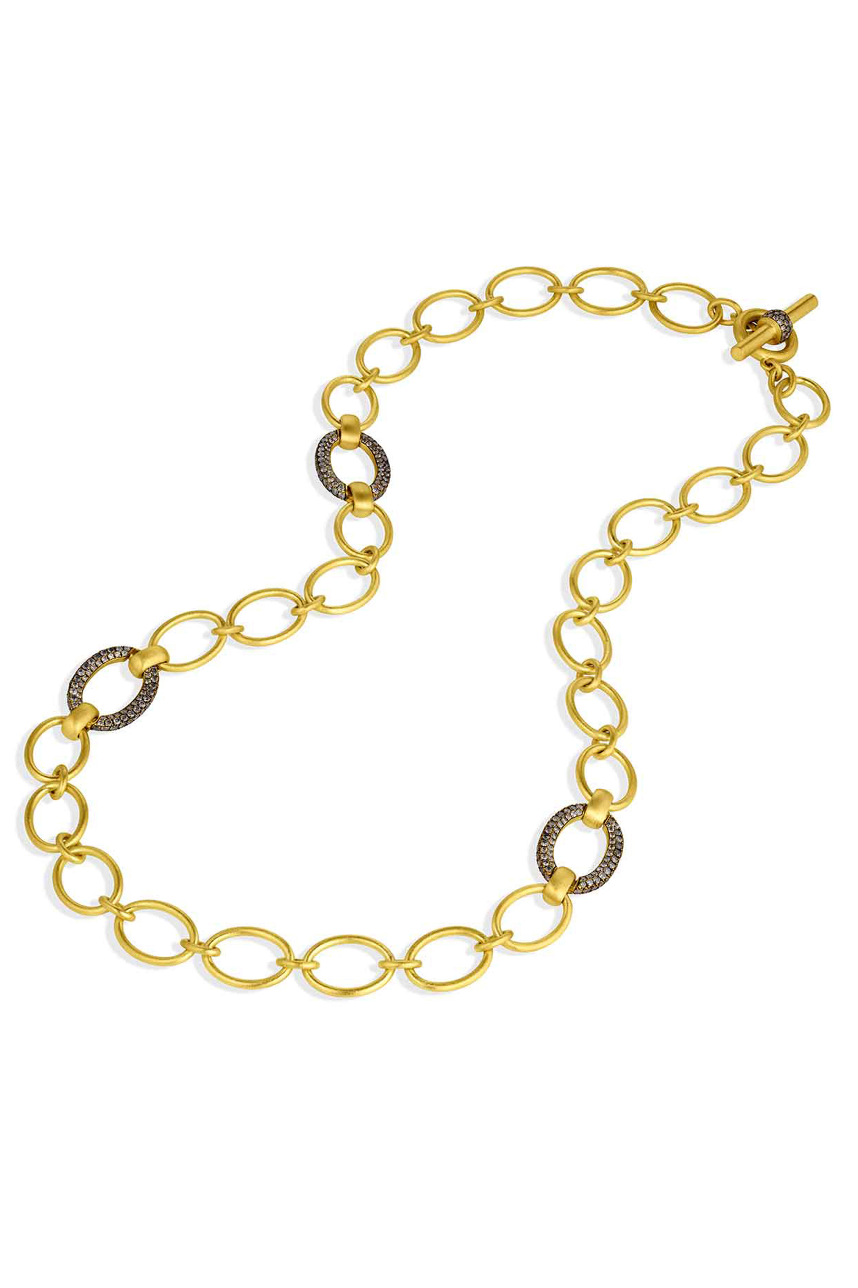 Our signature Large Handmade Chain is extra special with the addition of three pavé links and a pavé toggle. Each link is masterfully set with the silkiest pavé work. It can be worn with the toggle in front or back and layers perfectly with our pendants. This beautiful chain is a classic for any jewelry collection.
