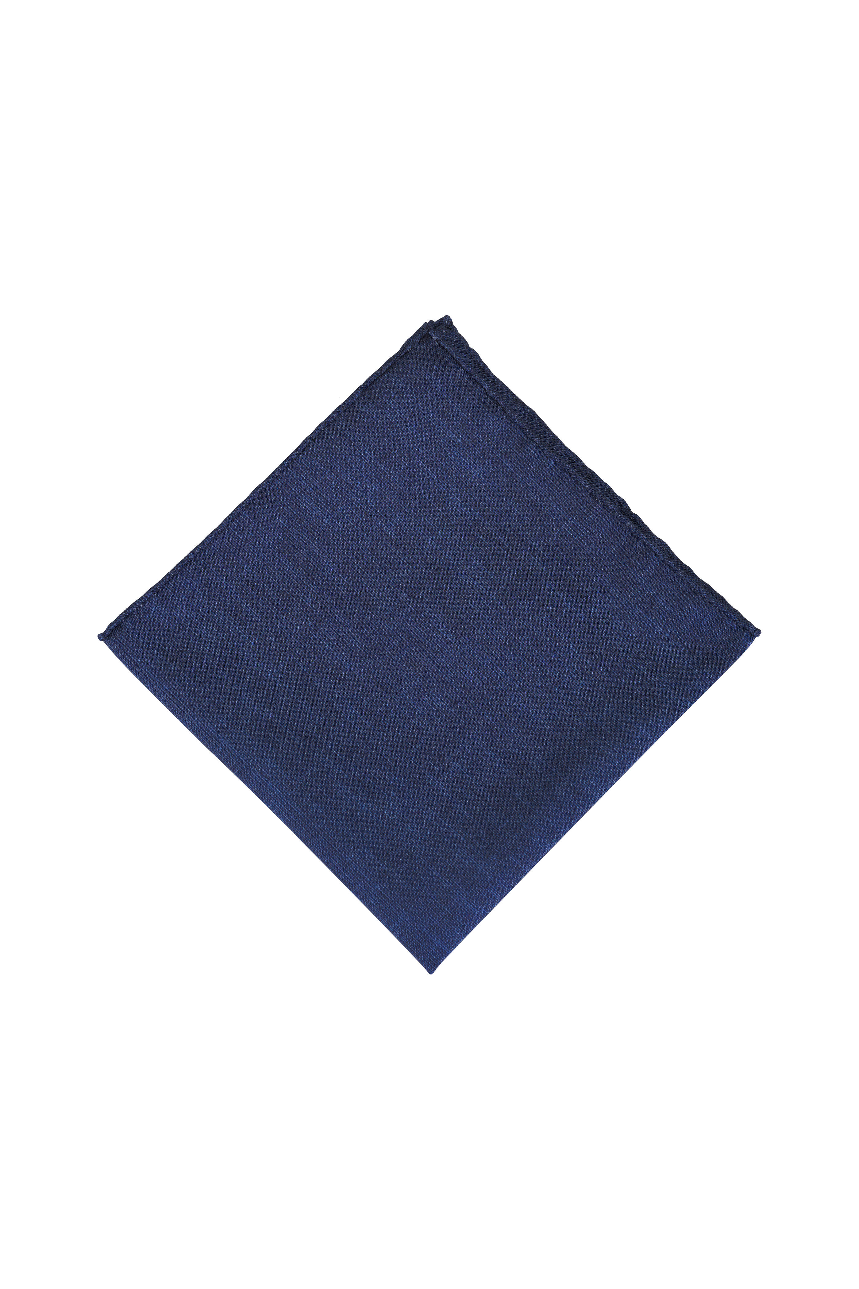 Solid Denim Cotton & Silk Pocket Square