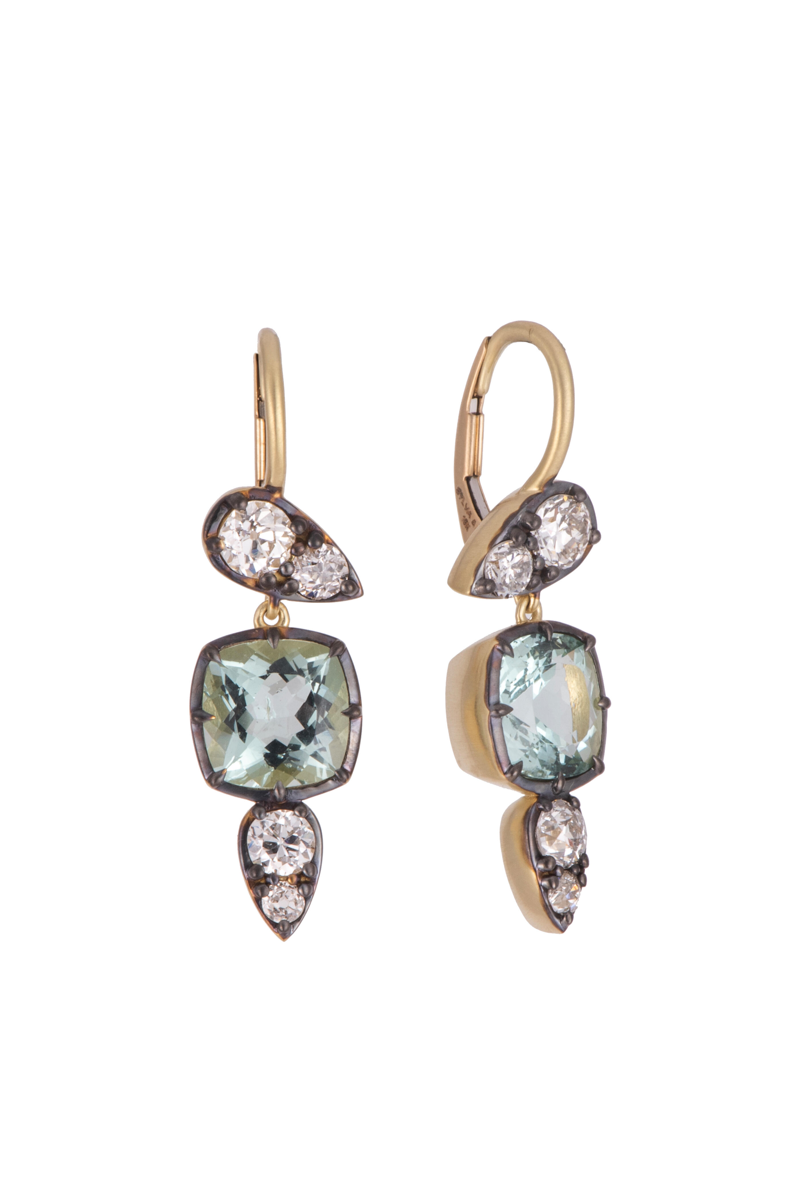 18k Yellow Gold Aquamarine & Diamond Drop Earring