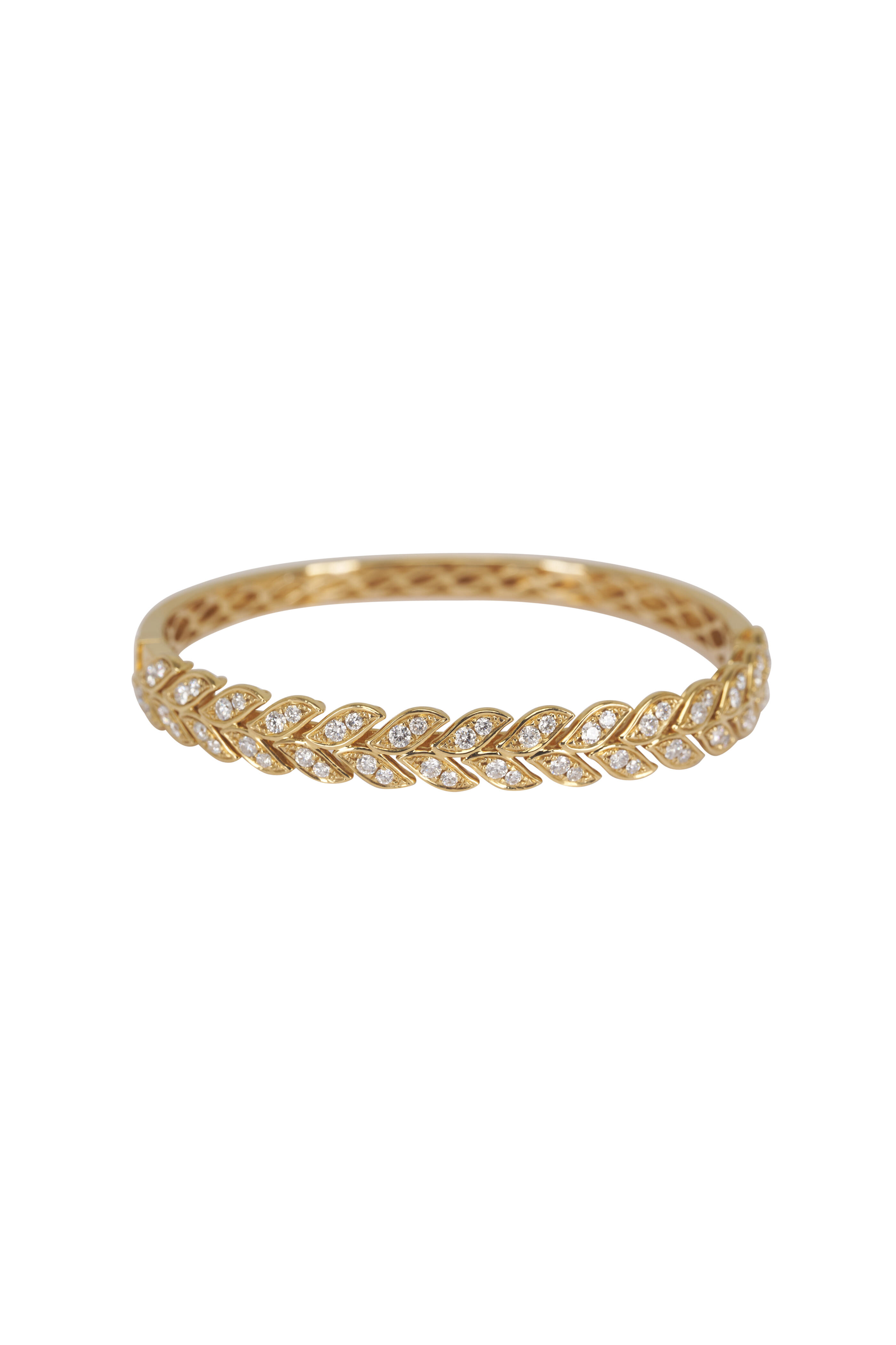 18k Yellow Gold Large Diamond Folha Bangle